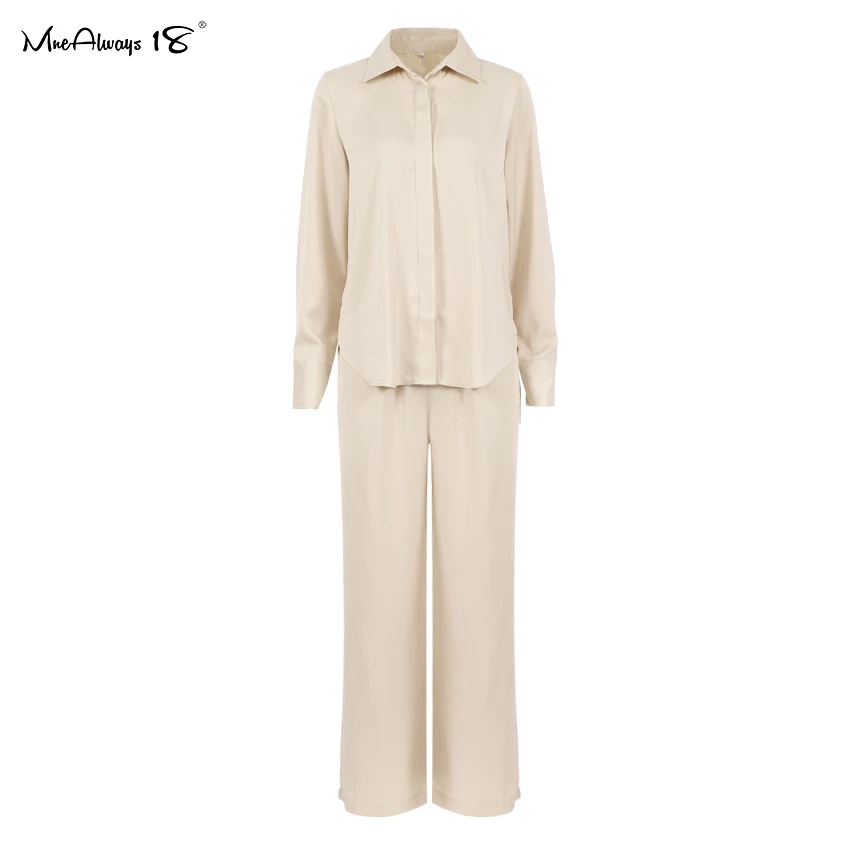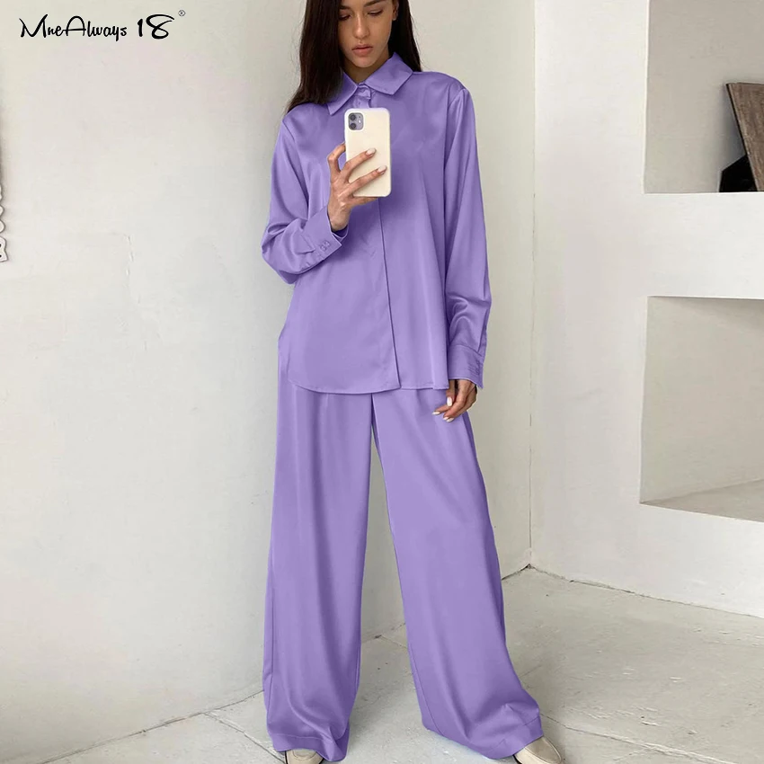 Mnealways18 Spring Summer 2 Piece Sets Ladies Office Outfits Shirts And Wide Legs Trousers Women Sets Oversize Suits Loungewear