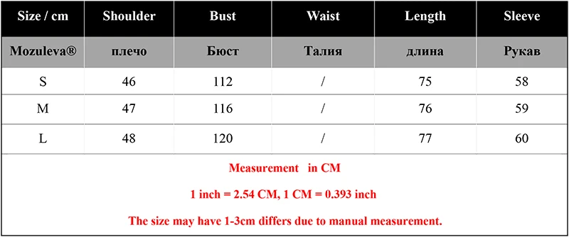 SizeShoulderBustLengthSleeve Length