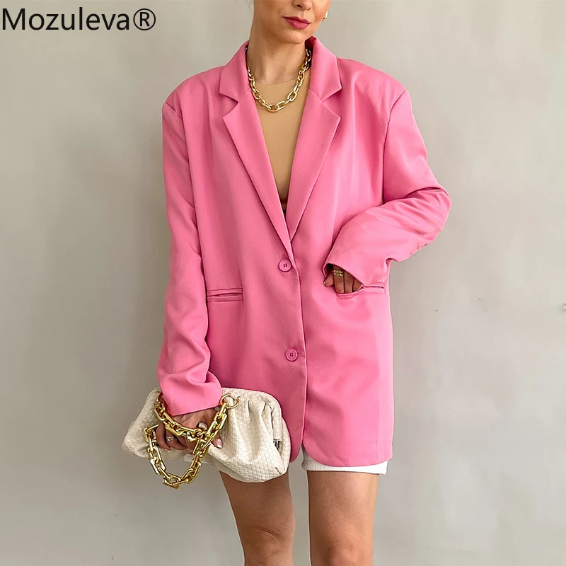Mozuleva 2021 Chic Loose Light Pink Women Blazer Spring Summer Single Buttons Female Oversized Suit Jacket Full Sleeve Outwear