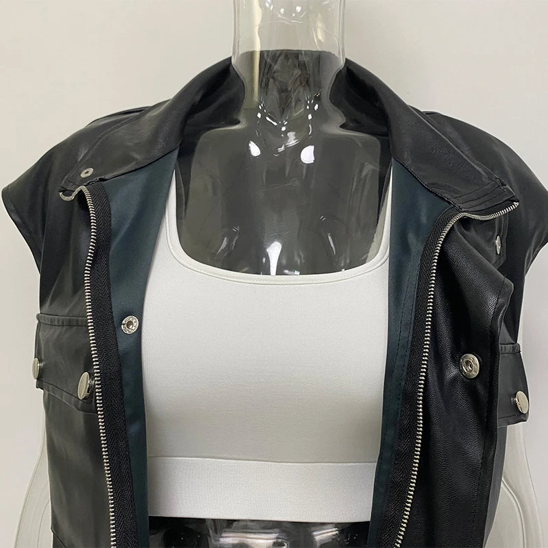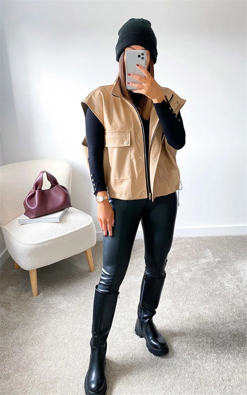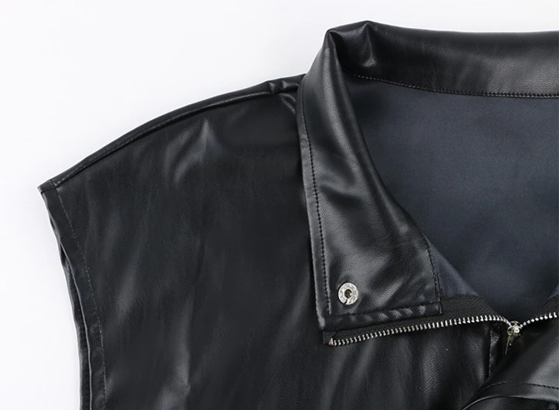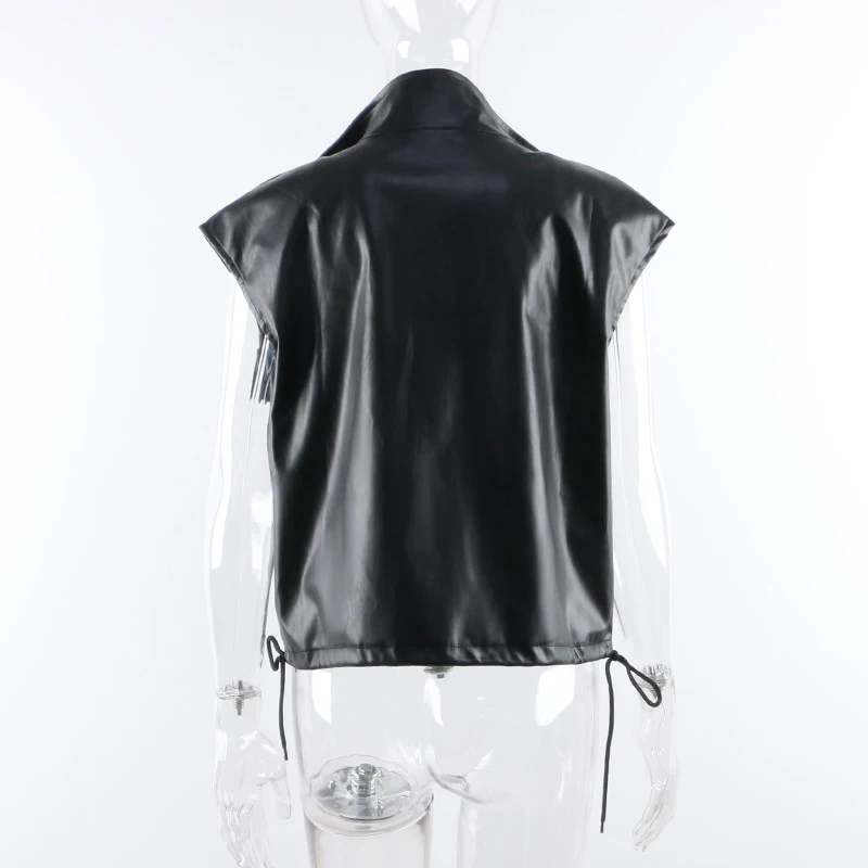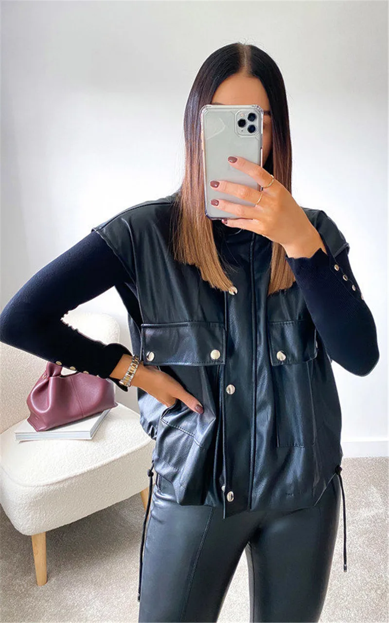 Nadafair Faux Leather Jacket Coat Women 2021 Spring Casual Pu Pockets Zipper Shrug Winter Sleeveless Jackets Coats Woman Vest