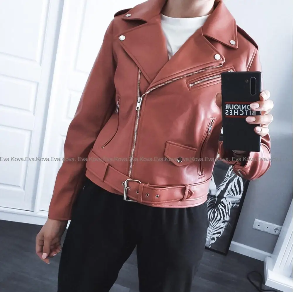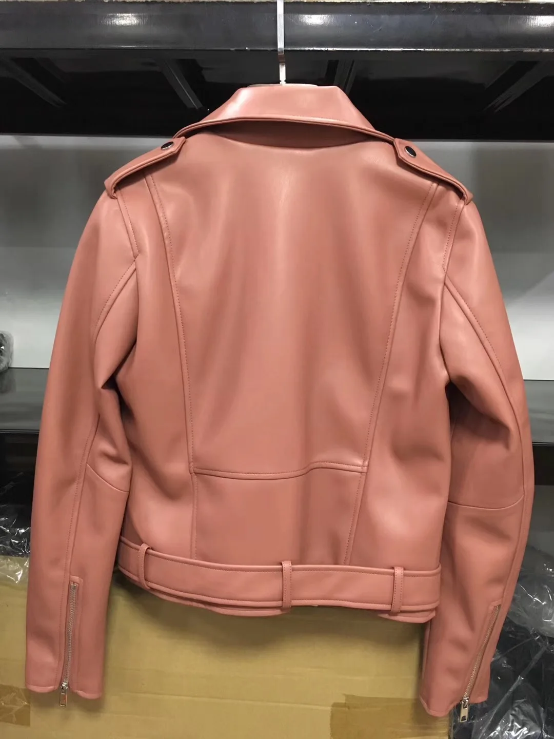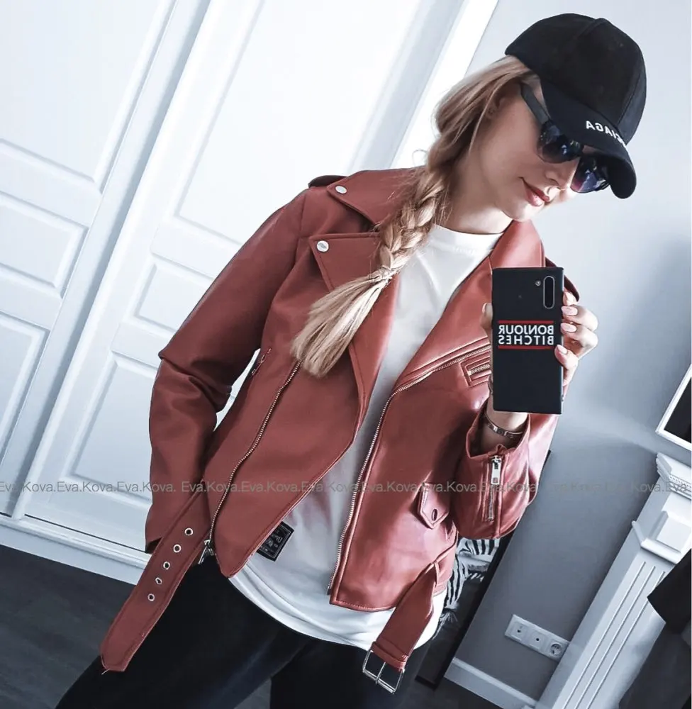 New 2021 Autumn Sashes Pu Faux Leather Jacket Women Zipper Slim Short Biker Jackets Coat Female Outwear Tops casacos feminino