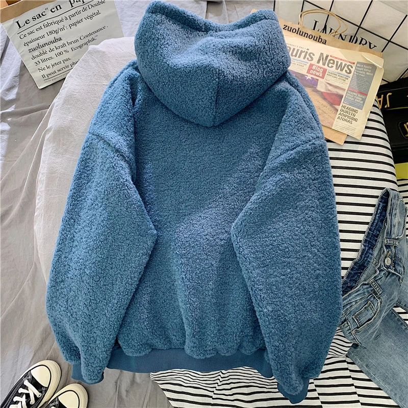 New Autumn Winter Thick Warm Coat Velvet Cashmere Women Hoody Sweatshirt Solid Blue Pullover Casual Tops Lady Loose Long Sleeve