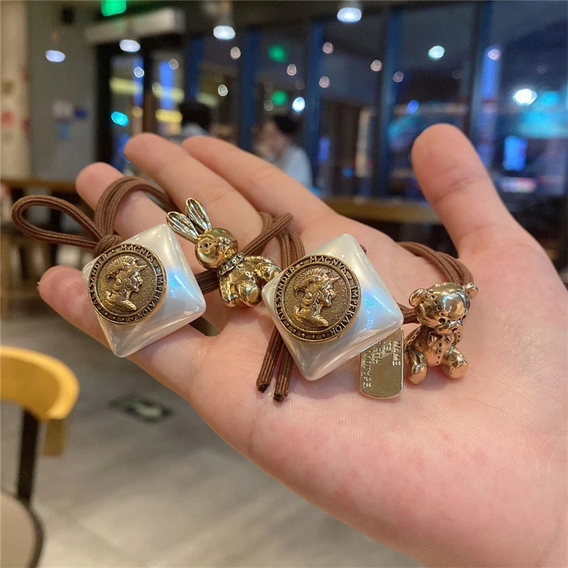 New Children Cute Rabbit Bear Elastic Hair Bands Women Girls Sweet Ponytail Organza Scrunchie Hair Ropes Hair Accessories 2020