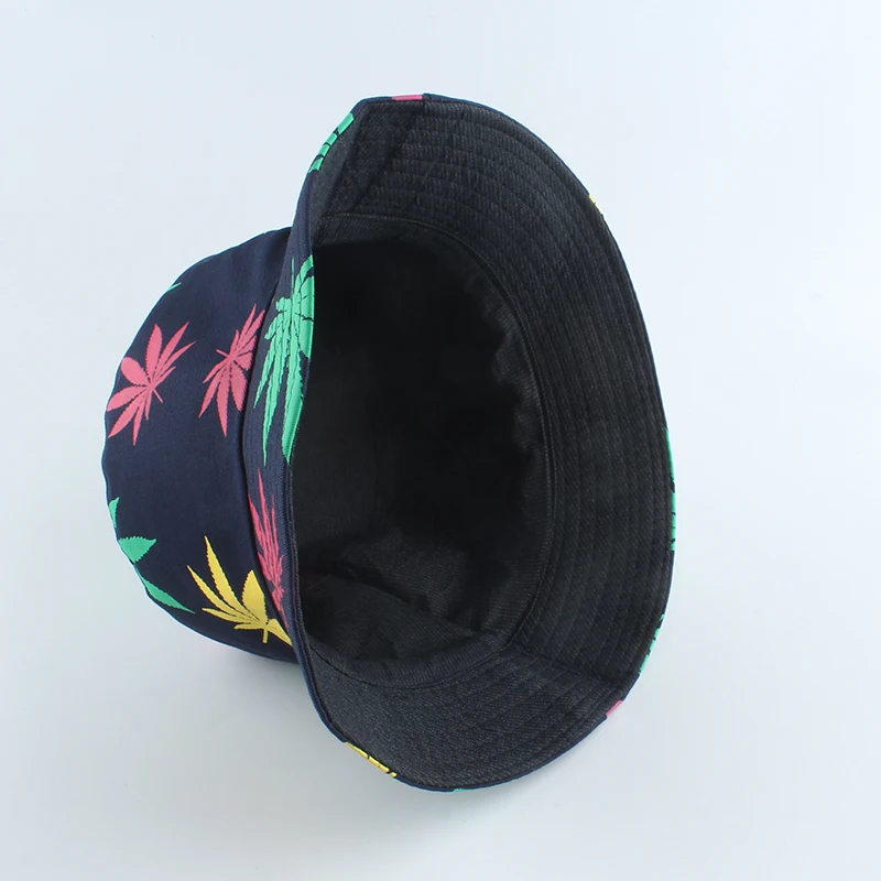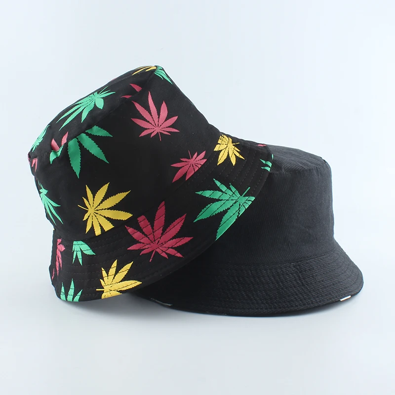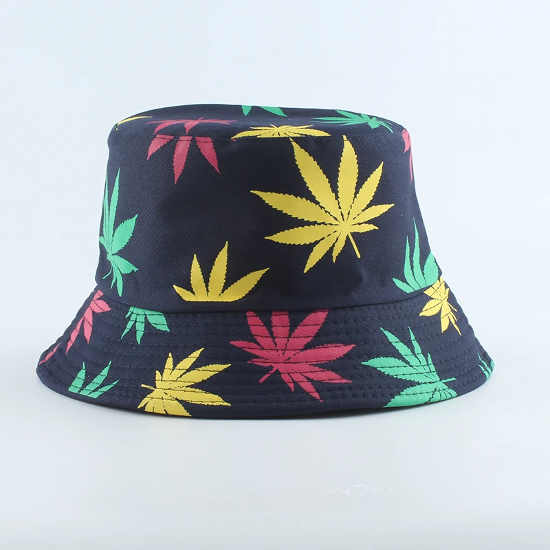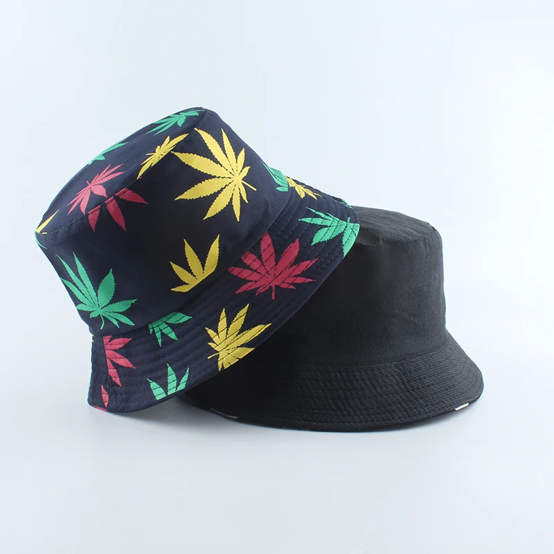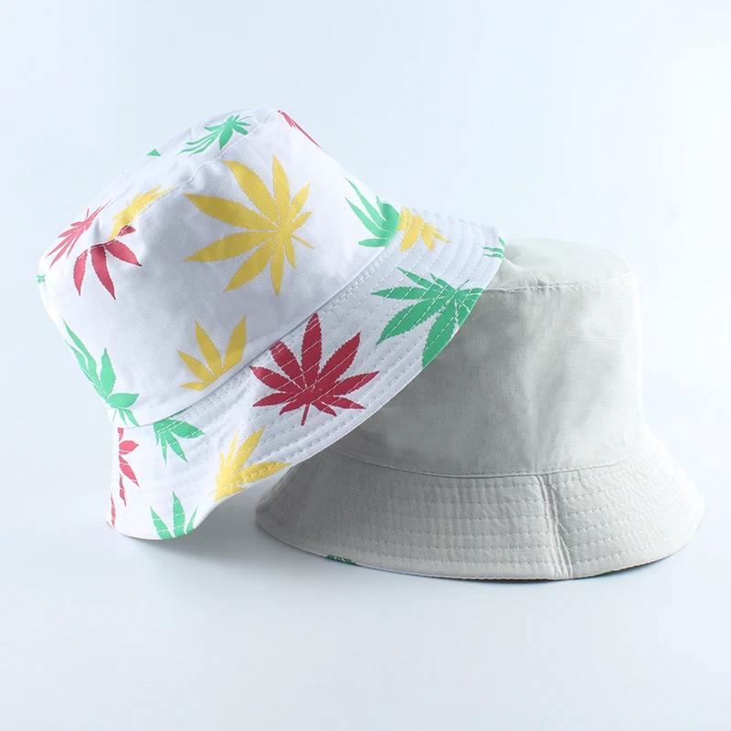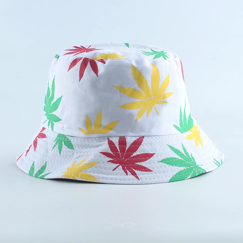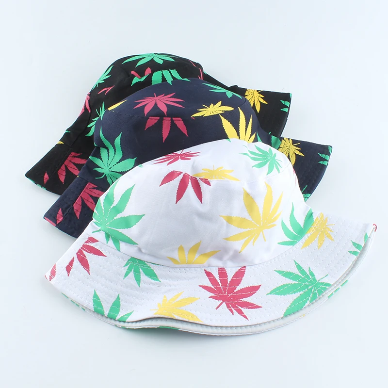 New Fashion Hip Hop Green White Black Leaf Print Fishing Hat Panama Bucket Hats For Men Women Summer Bob Reversible Bucket Cap