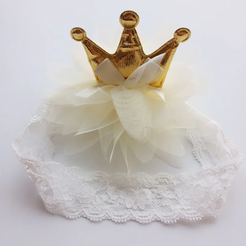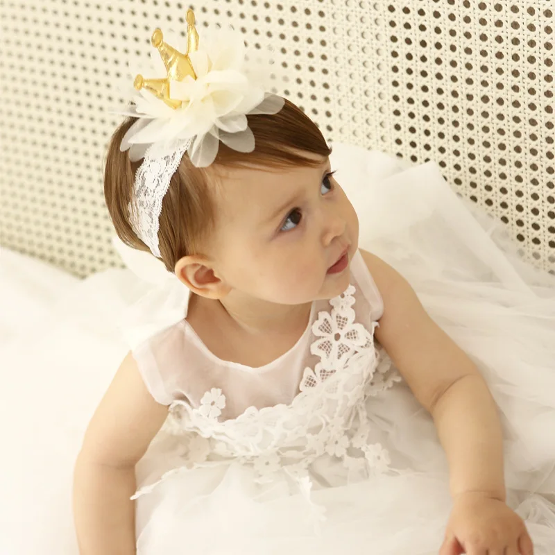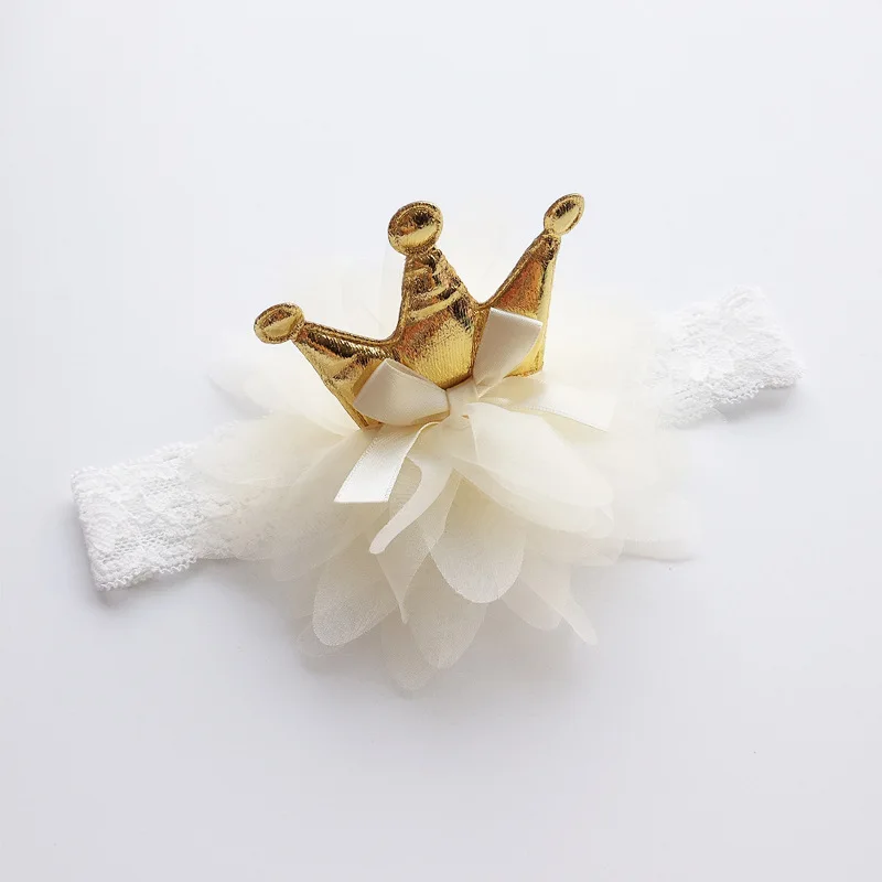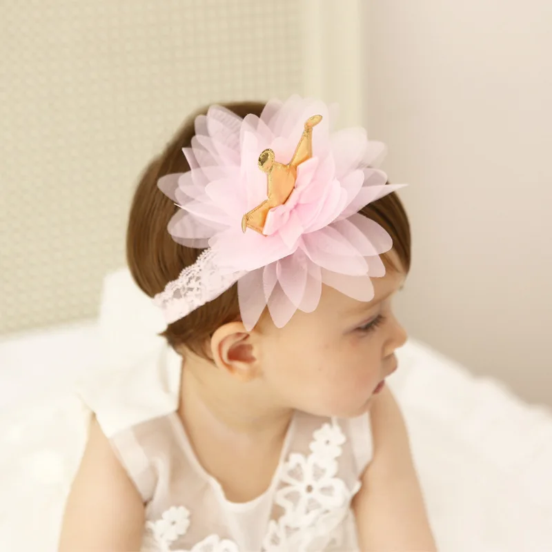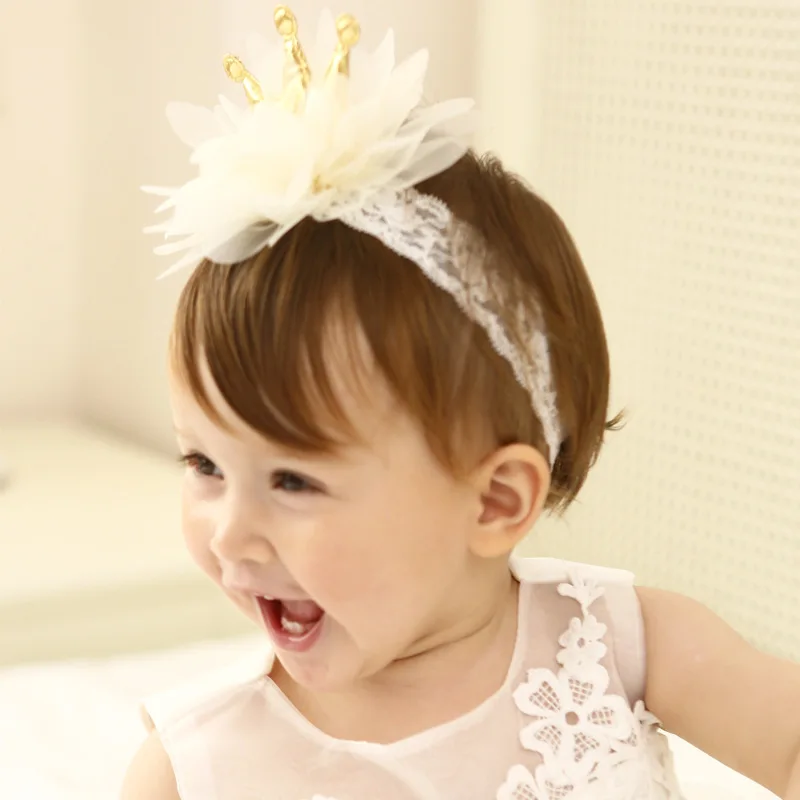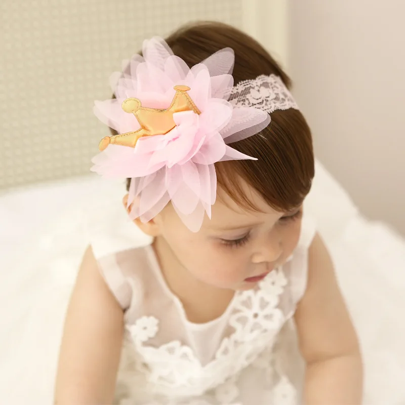2017 New Pink And Beige Crown Flowers Hairbands Girls Headwear Children Headbands Elastic Hair Band Kids Hair Accessories