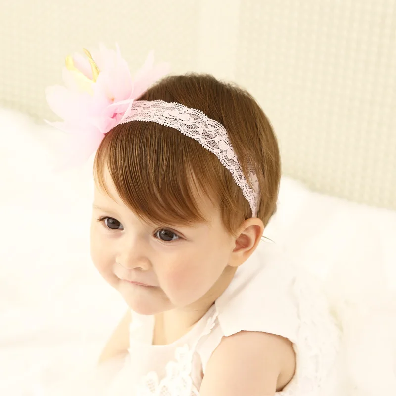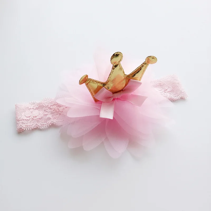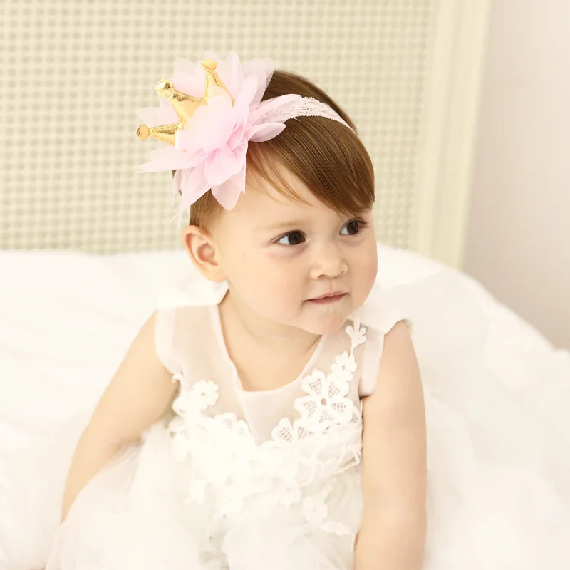 New Pink And Beige Crown Flowers Hairbands Girls Headwear Children Headbands Elastic Hair Band Kids Hair Accessories