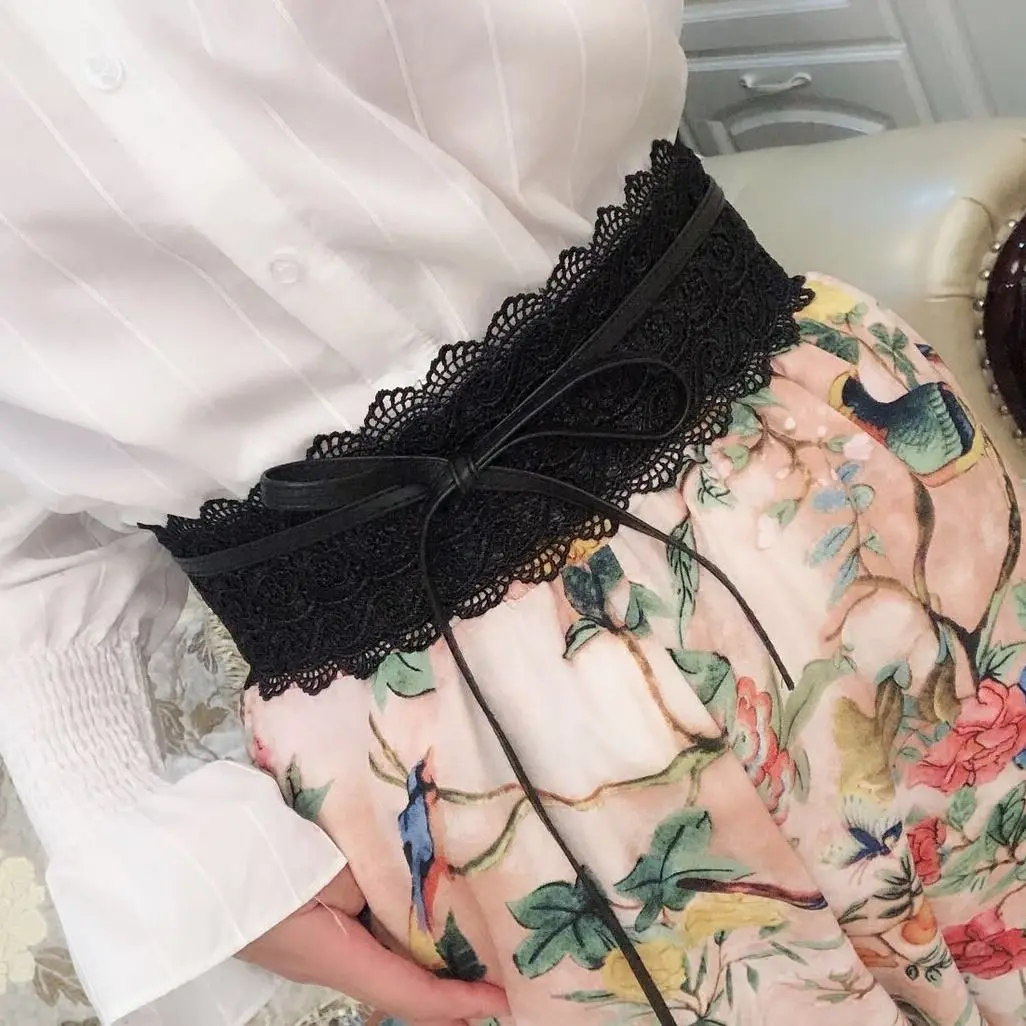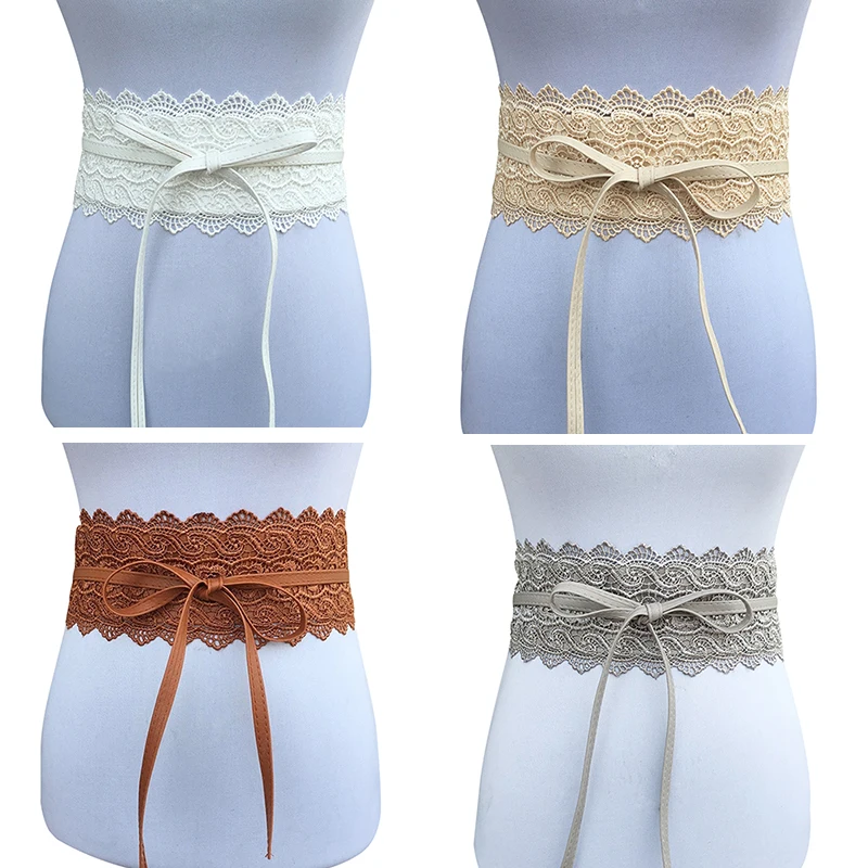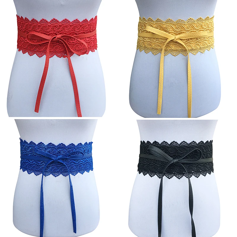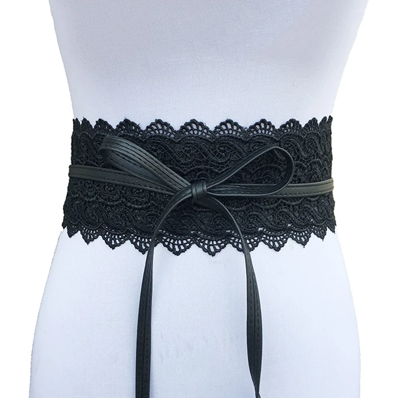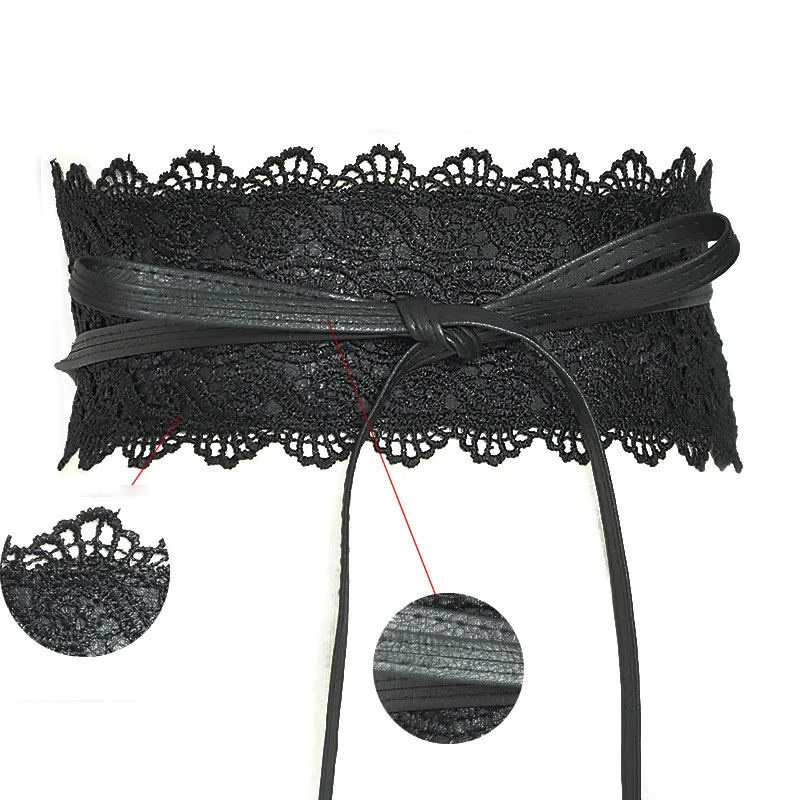 New Women Bow Lace Belt Corset Wide Belts for Women Black White Female Self Tie Obi Cinch Waistband Wedding Dress Waist Band