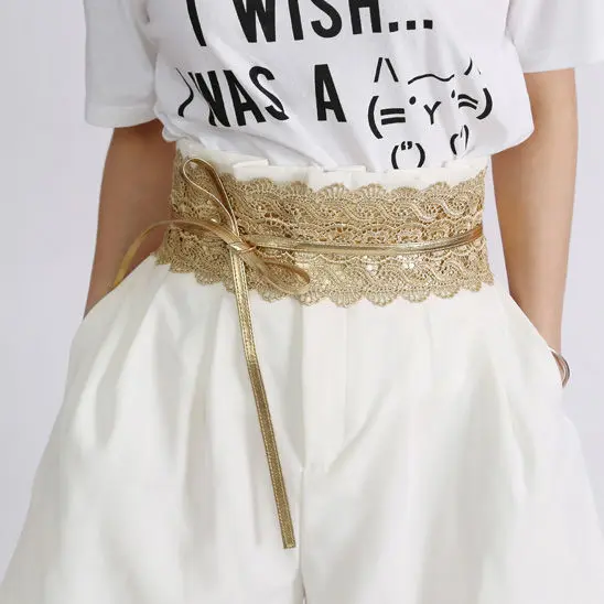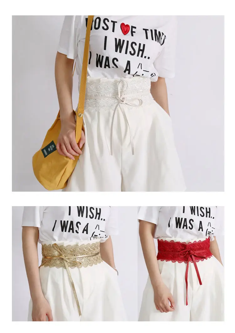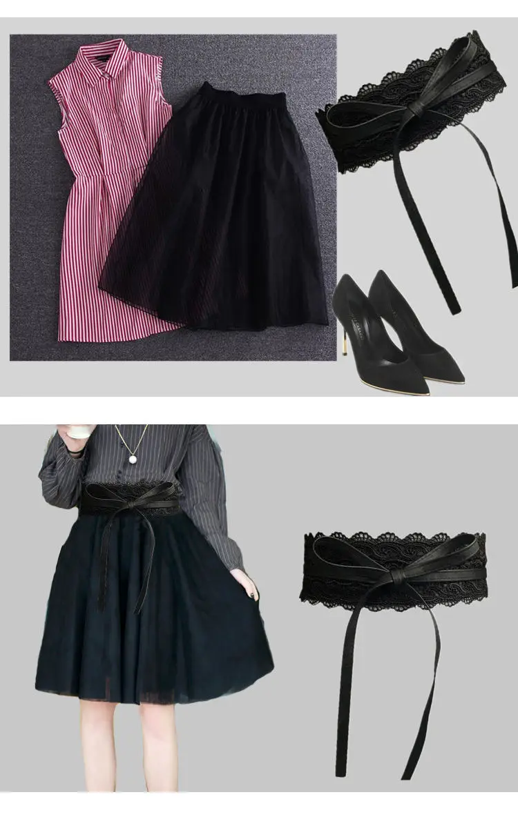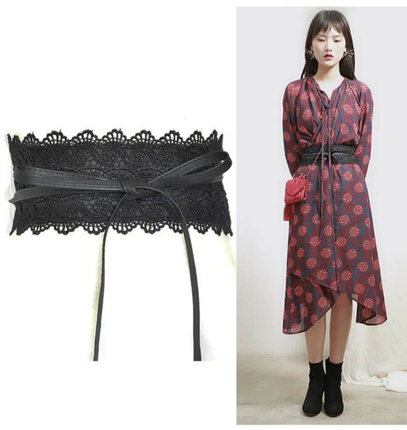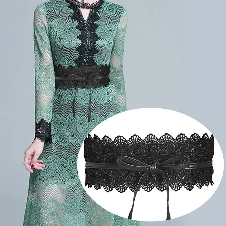 New Women Bow Lace Belt Corset Wide Belts for Women Black White Female Self Tie Obi Cinch Waistband Wedding Dress Waist Band
