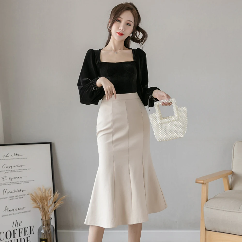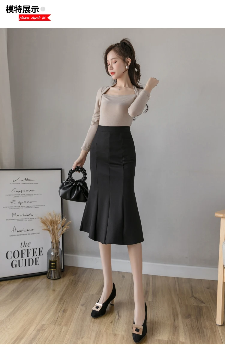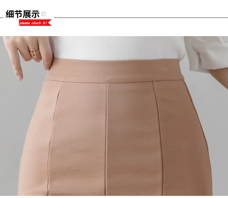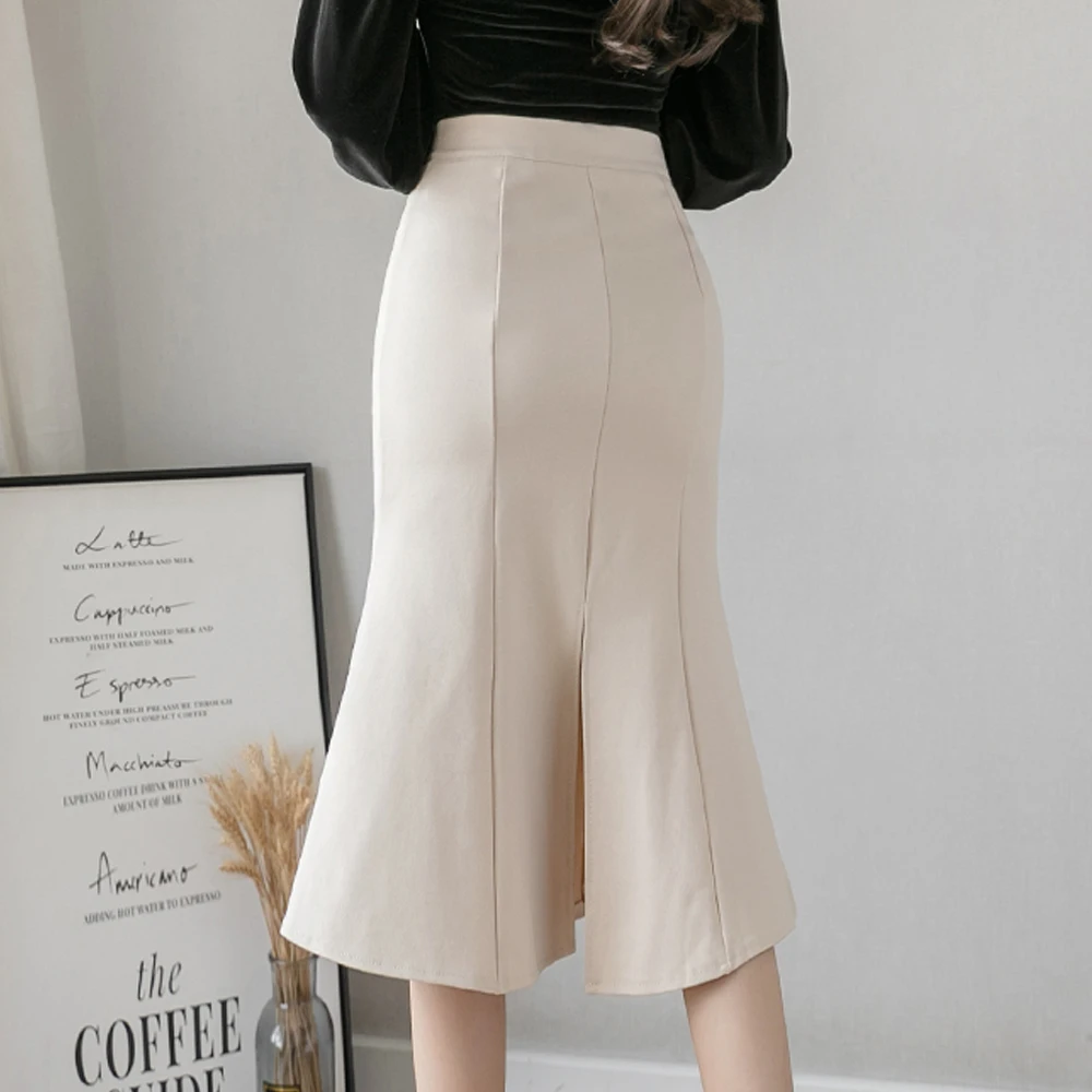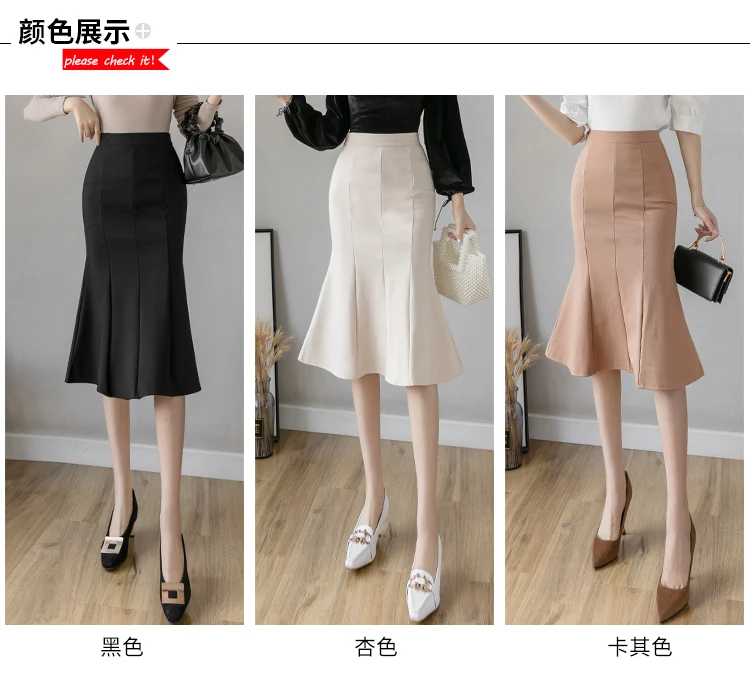 New Women High Waist Midi Skirts Plus Size Ruffles Black Khaki Beige Office OL Skirt Fashion Package Hip Mermaid Skirts Womens