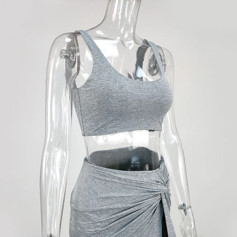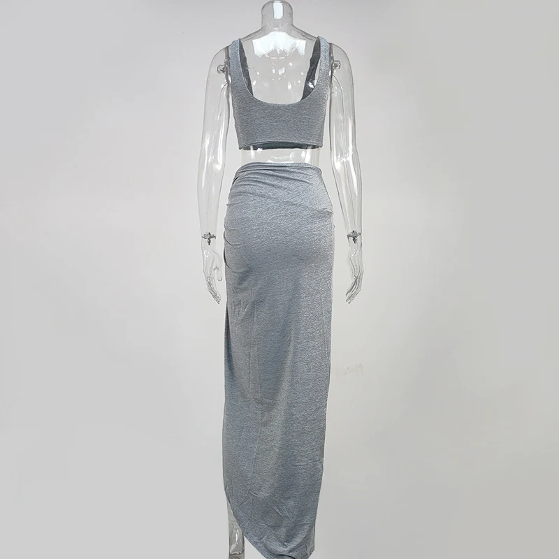 NewAsia Sexy Party 2 Piece Set Women Plus Size Crop Top Twist Side Split Long Skirts Matching Sets Club Two Piece Outfits 2021