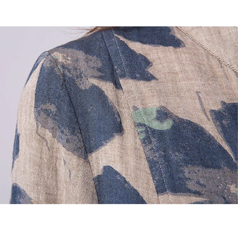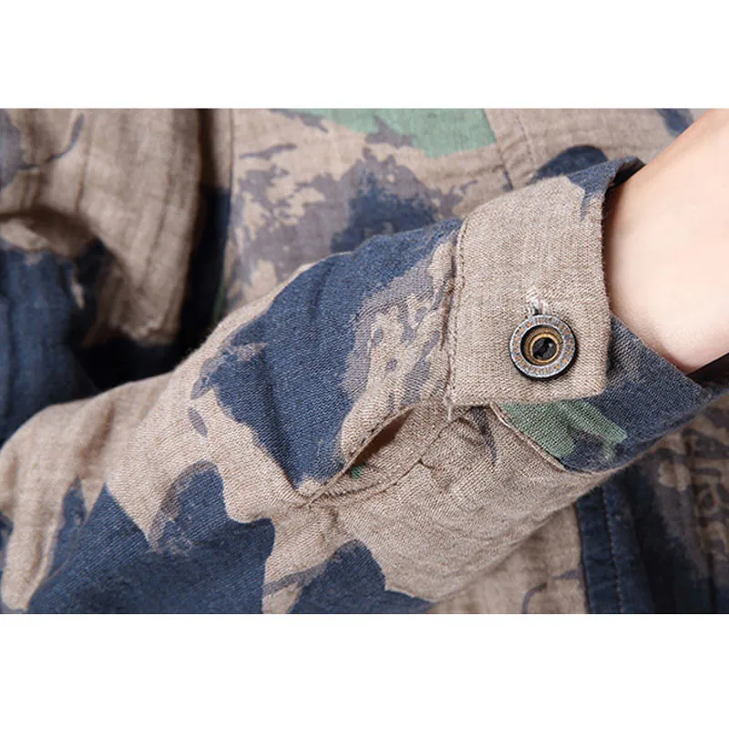 2018 Spring New Fashion Floral Print Cotton Linen Blouses Korean Casual Long Sleeve Shirt Women Plus Size Women Top With Pockets