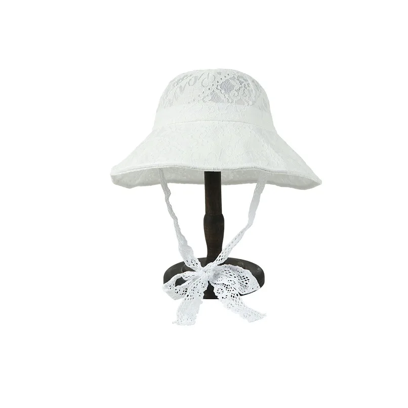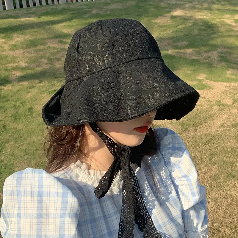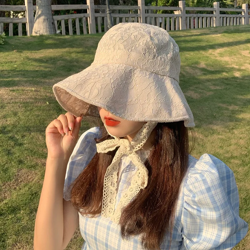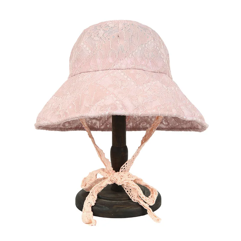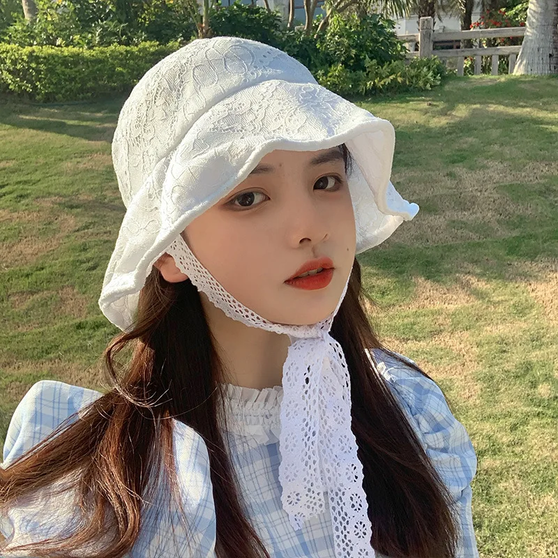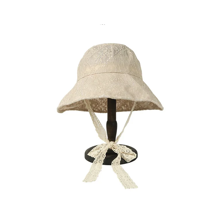 OMEA Lace Bucket Hat Women Cute Floral Fisherman Hat Summer Beach Visor Adjustable Ribbon Wide Brim Bonnet Elegant Cap Luxury