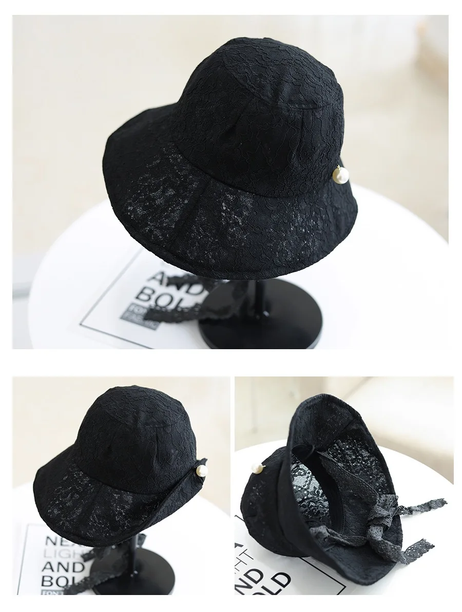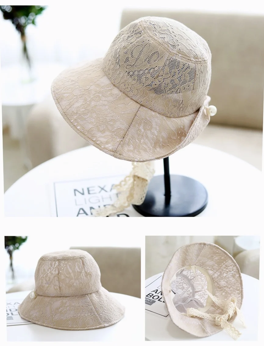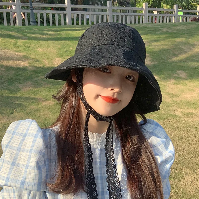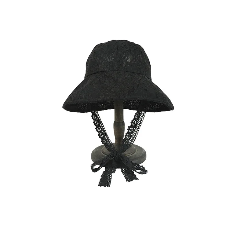 OMEA Lace Bucket Hat Women Cute Floral Fisherman Hat Summer Beach Visor Adjustable Ribbon Wide Brim Bonnet Elegant Cap Luxury