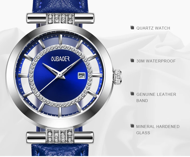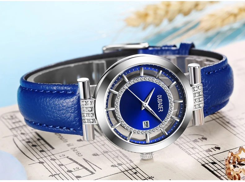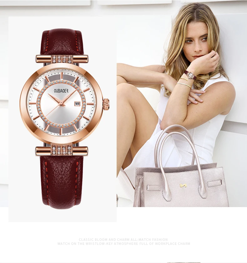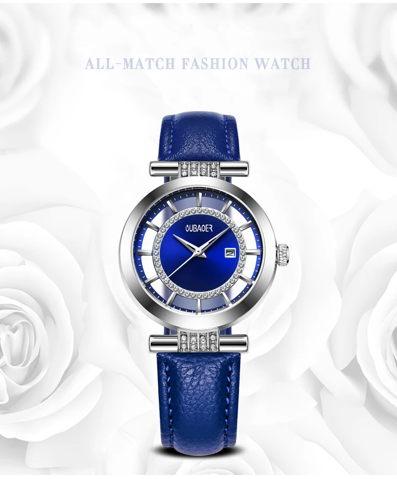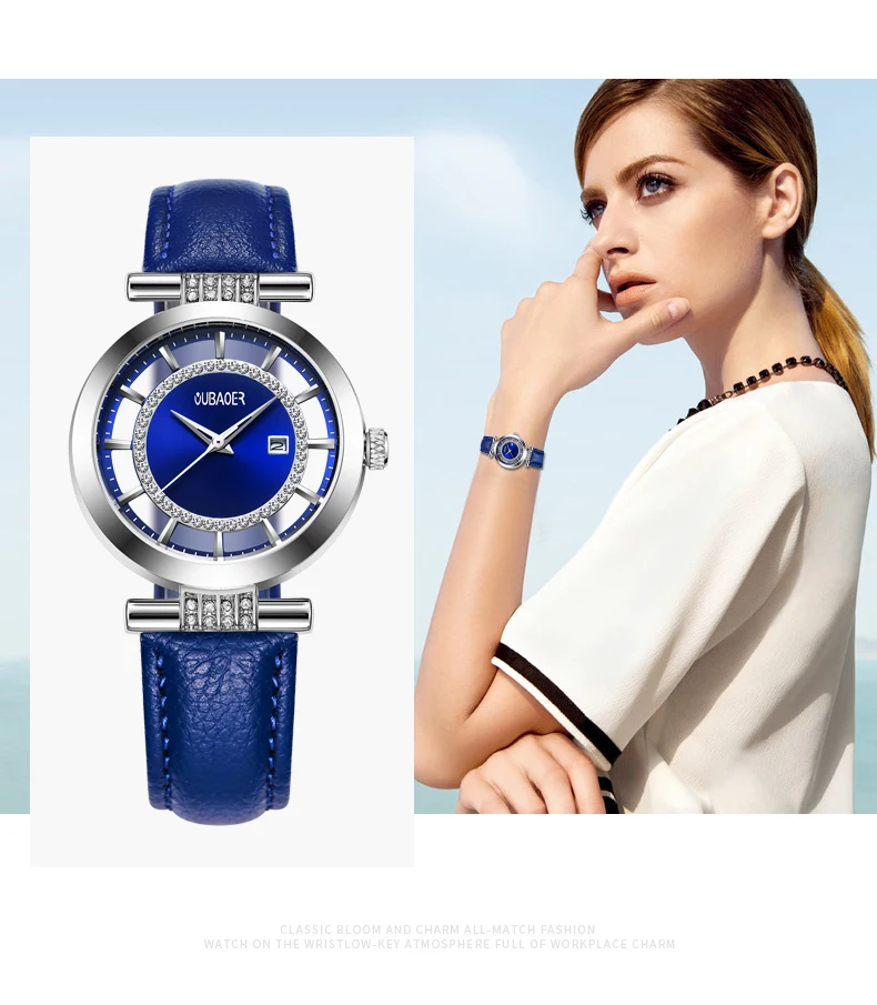 OUBAOER 2021 Women Watches Waterproof Quartz Movement Leather Clock Luxury Fashion Trend Ladies Diamond Wristwatches Best Seller