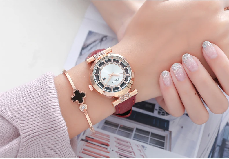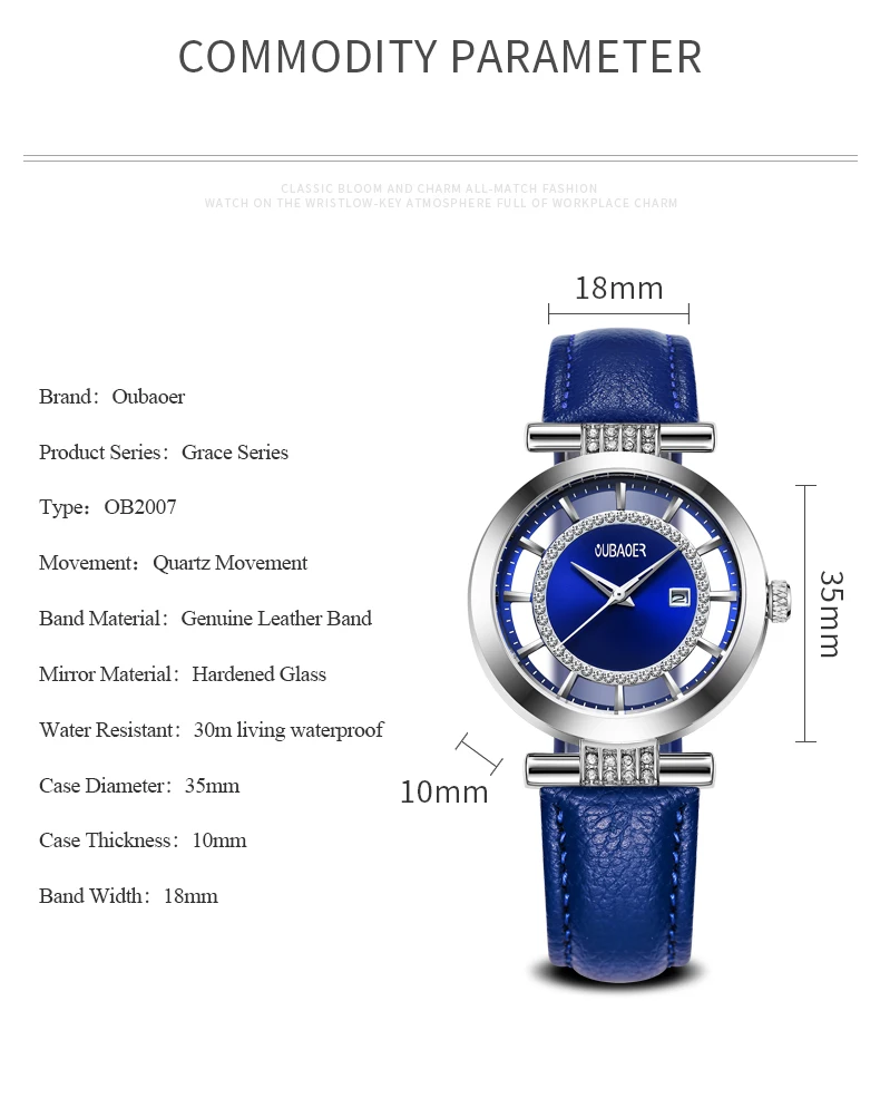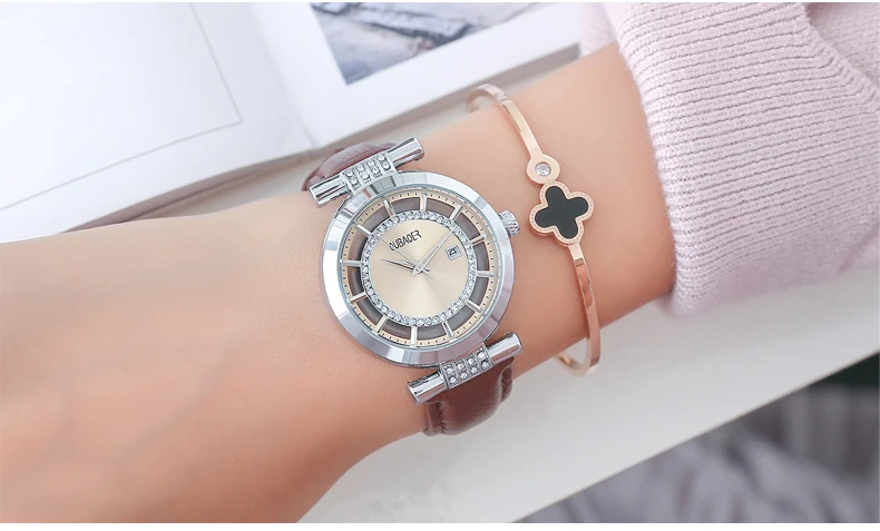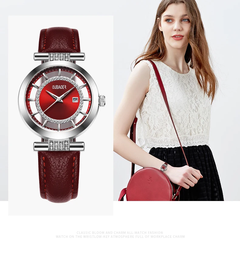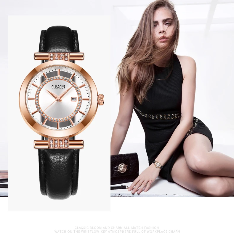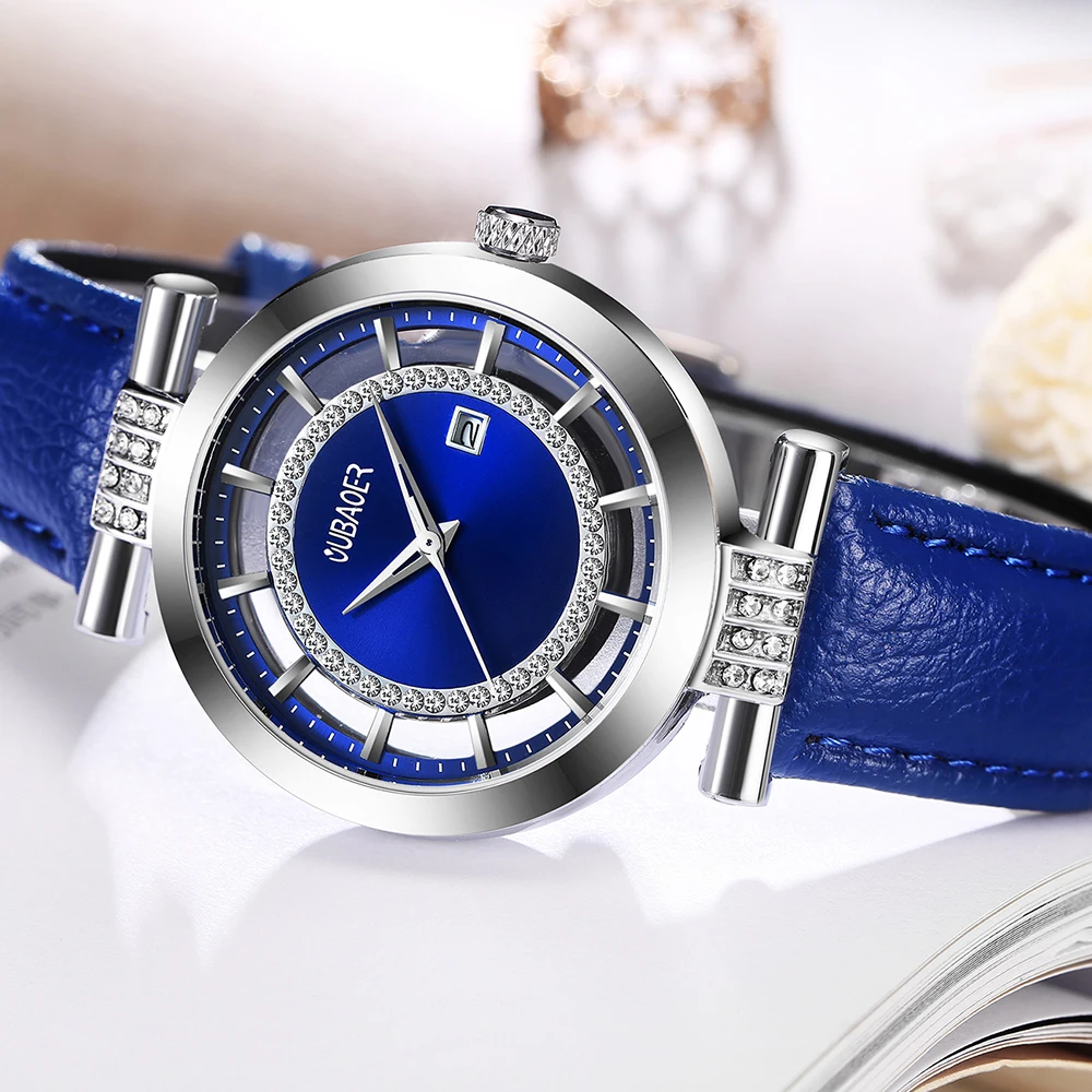 OUBAOER 2021 Women Watches Waterproof Quartz Movement Leather Clock Luxury Fashion Trend Ladies Diamond Wristwatches Best Seller