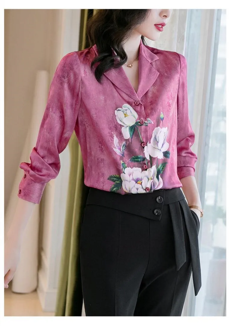 Print Chiffon Blouse Women Long Sleeve Loose Buttoned Top 2020 Autumn New Fashion Wear Office Lady Casual Shirt Plus Size