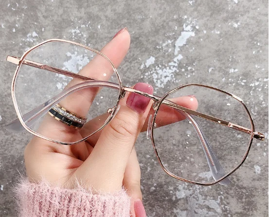 Retro Geometric Glasses Transparent Anti-blue Lens Fashion Golden Metal Frame Transparent Optical Men and Women Eyeglass