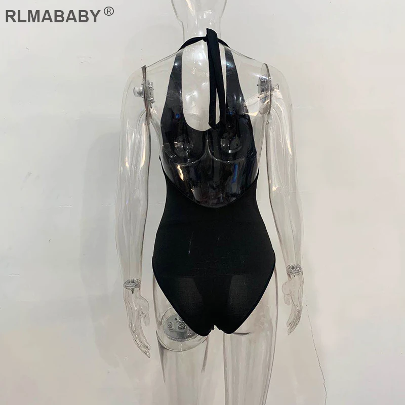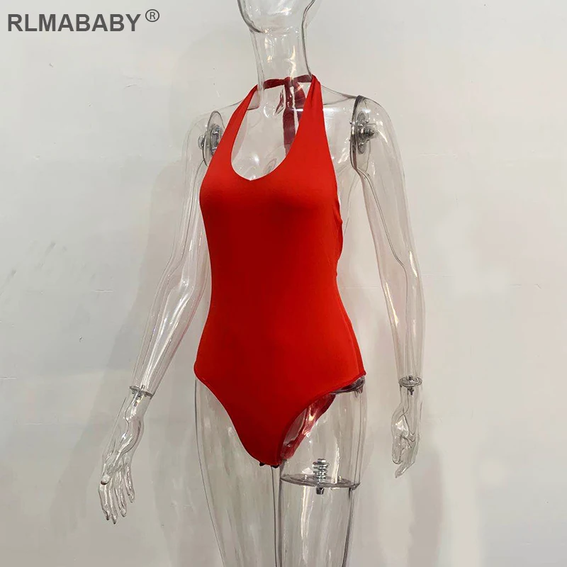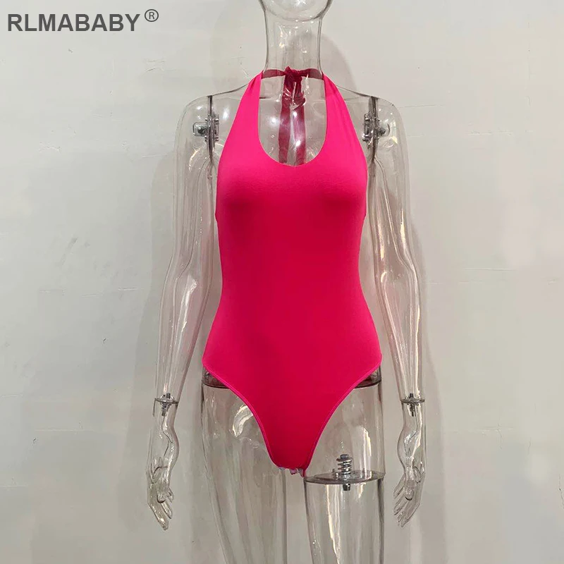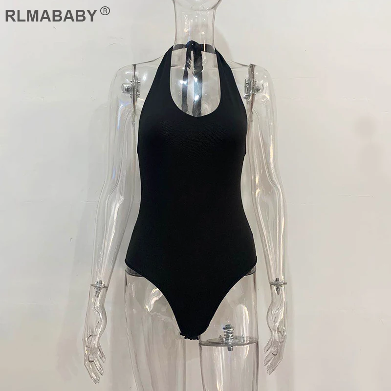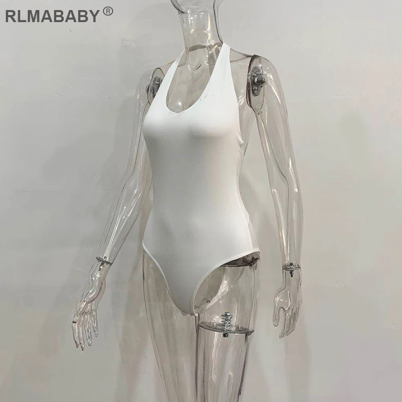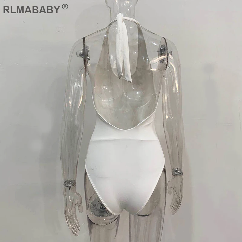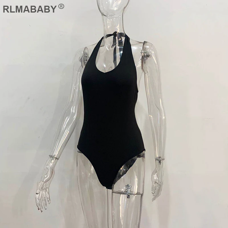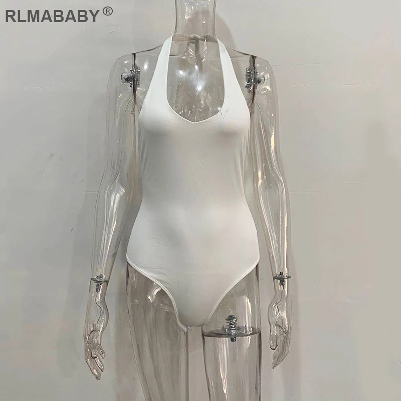 RLMABABY Summer Backless Sexy Bodysuit Halter Bodycon Rompers Womens Jumpsuit Casual Swimwear Bodysuit Top Club Bandage Bodysuit