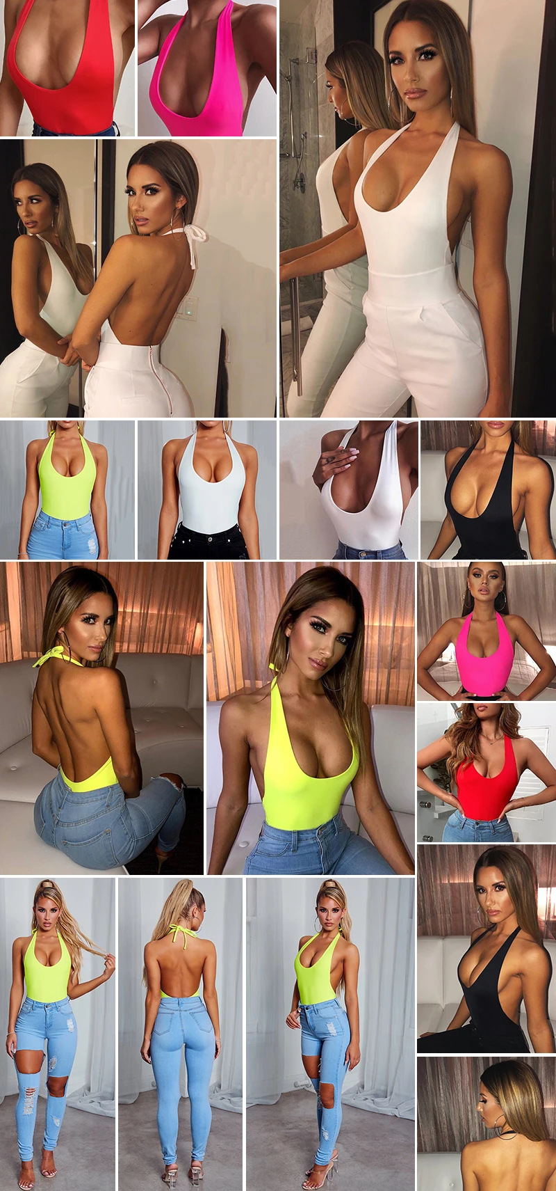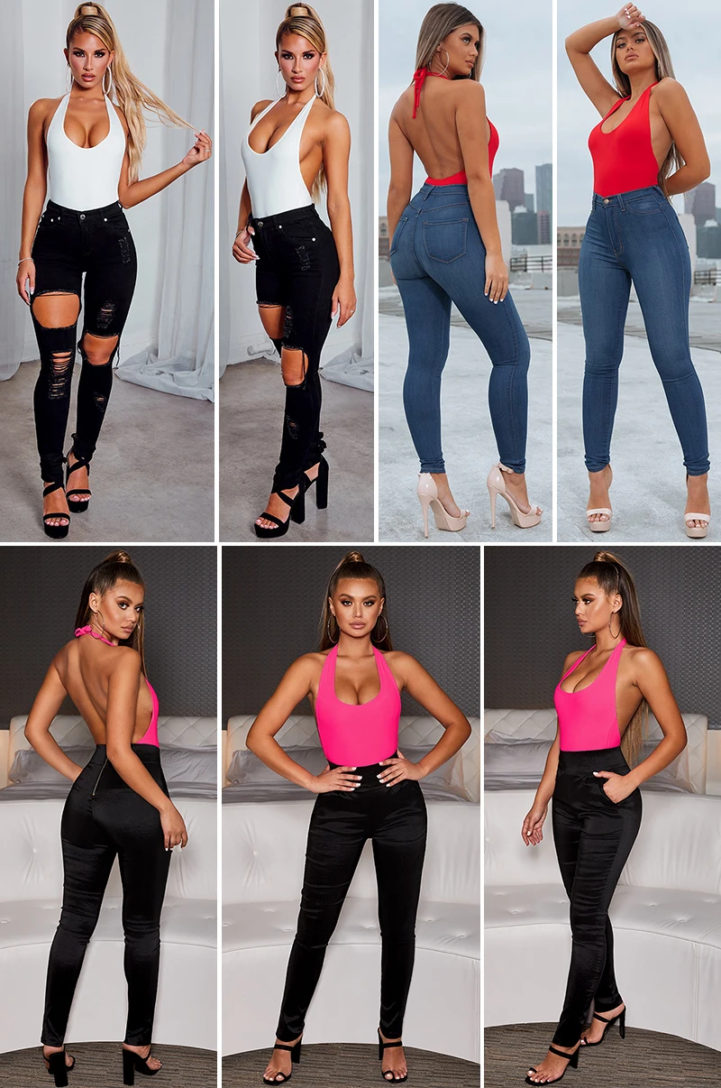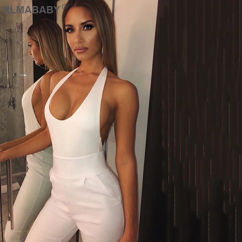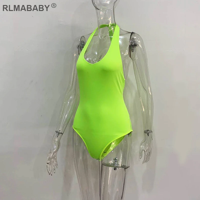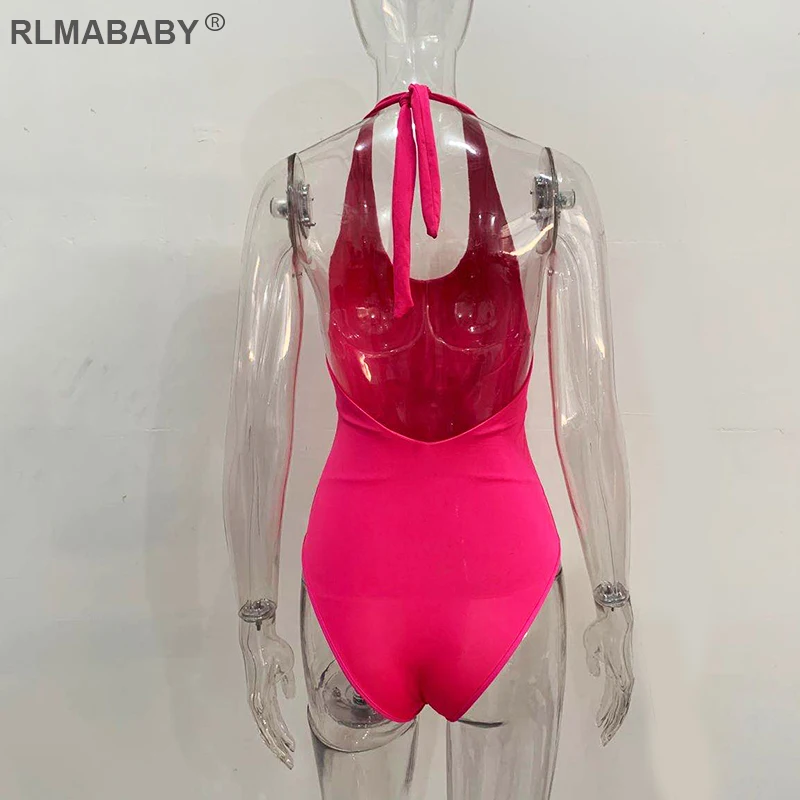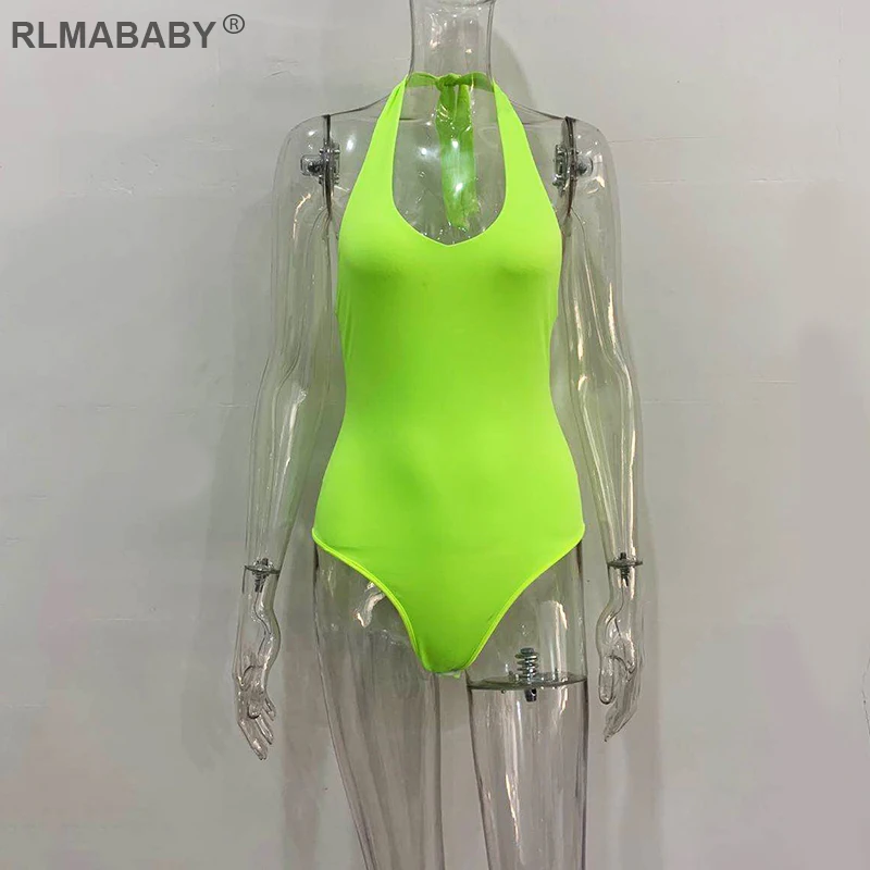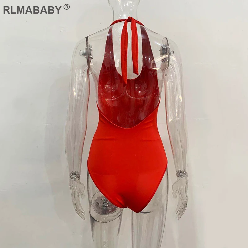 RLMABABY Summer Backless Sexy Bodysuit Halter Bodycon Rompers Womens Jumpsuit Casual Swimwear Bodysuit Top Club Bandage Bodysuit