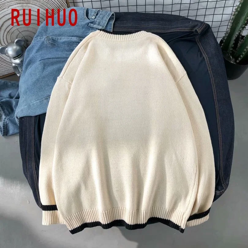 RUIHUO Harajuku Knitted Sweater Men Clothing Winter Pullover Men Sweater Fashion Harajuku Clothes Hip Hop 2XL 2021 New Arrivals