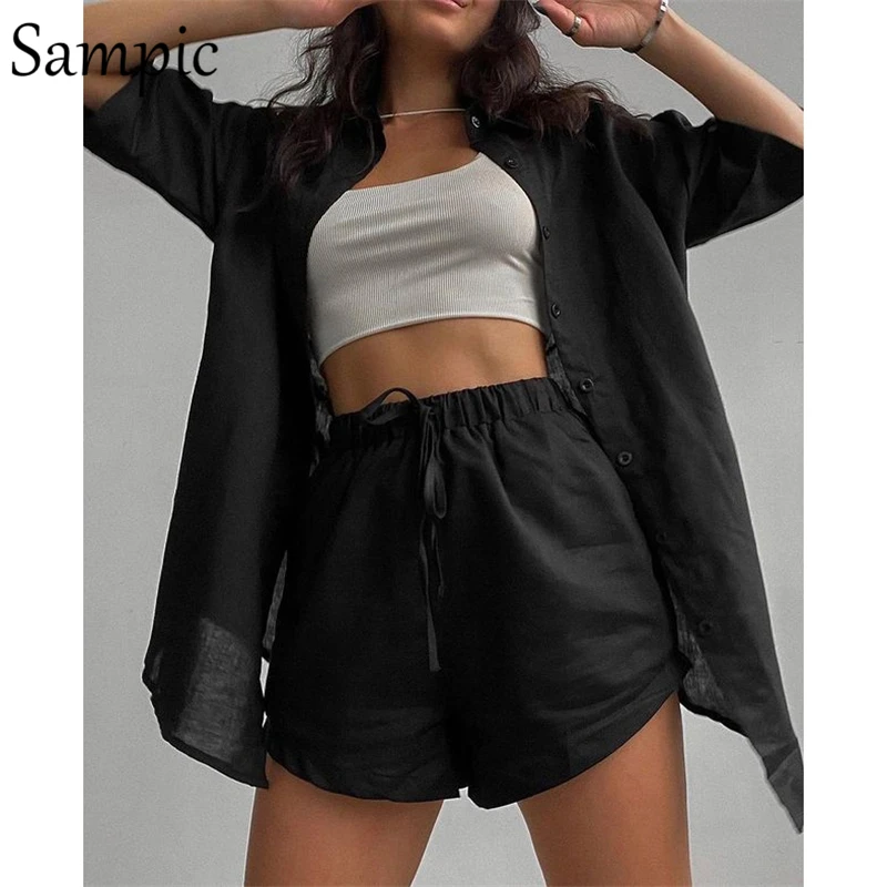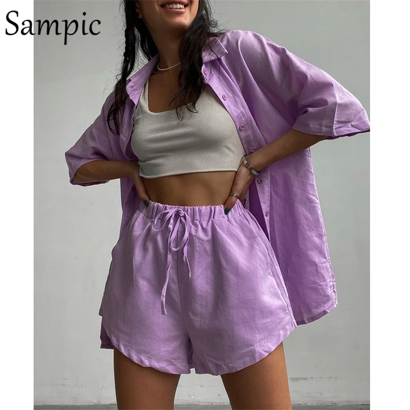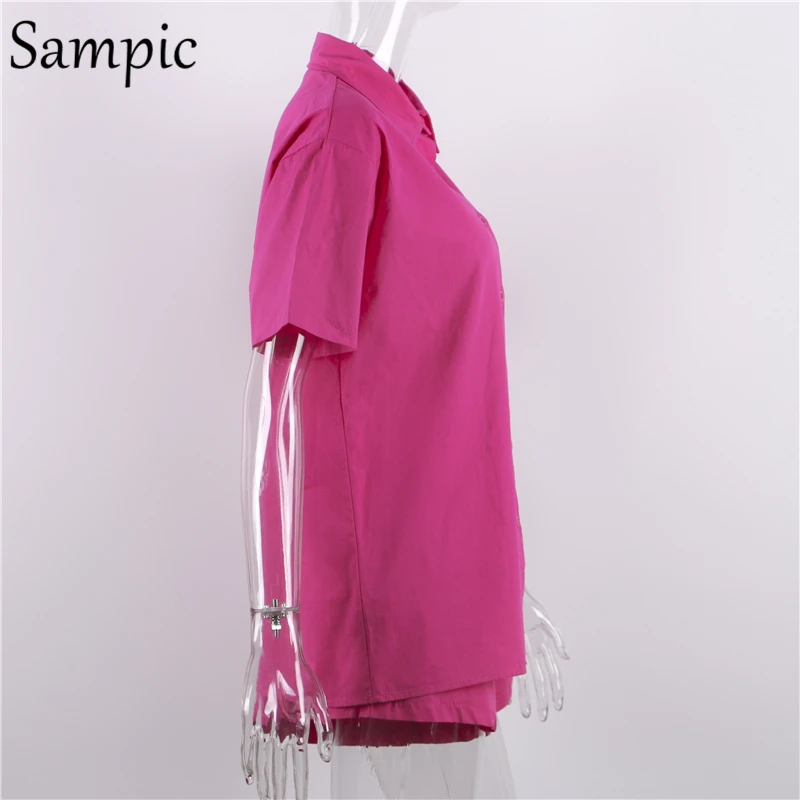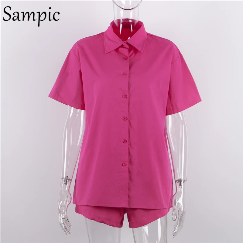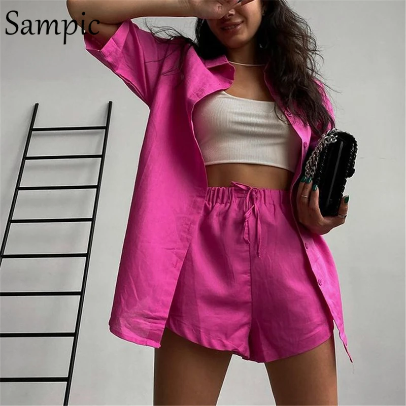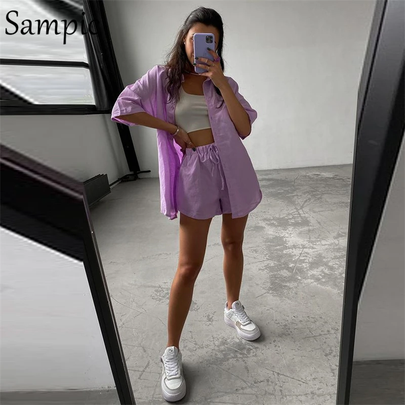 Sampic Casual Lounge Wear Summer Green Tracksuit Women Shorts Set Short Sleeve Shirt Tops And Loose Mini Shorts Two Piece Set