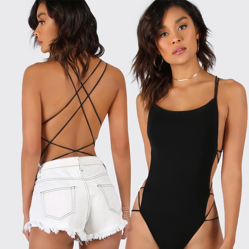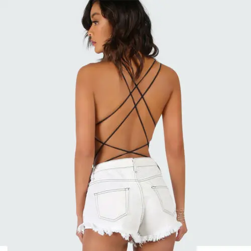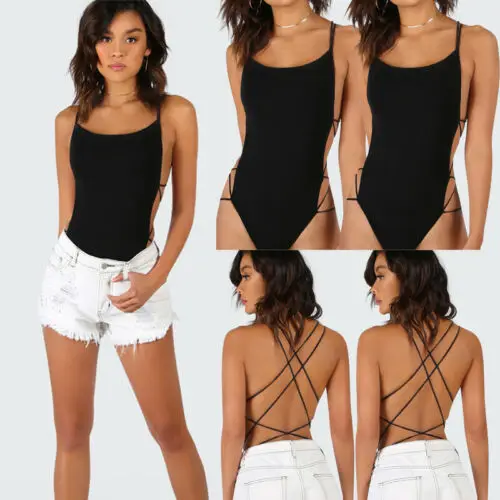 Sexy Backless Bodysuits Sexy Body for Women Clubwear Playsuit Cocktail Party Bandage Rompers Sleeveless Black Romper Female Top