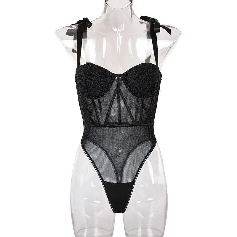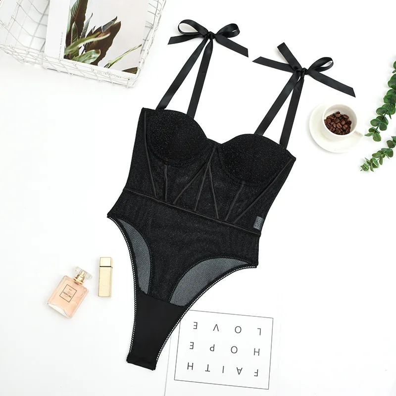 Sexy Bodysuit for Female Women Black Shiny Bandage One Piece Overalls Sleeveless Fashion Large Size Rompers Lace Up Top Bodycon