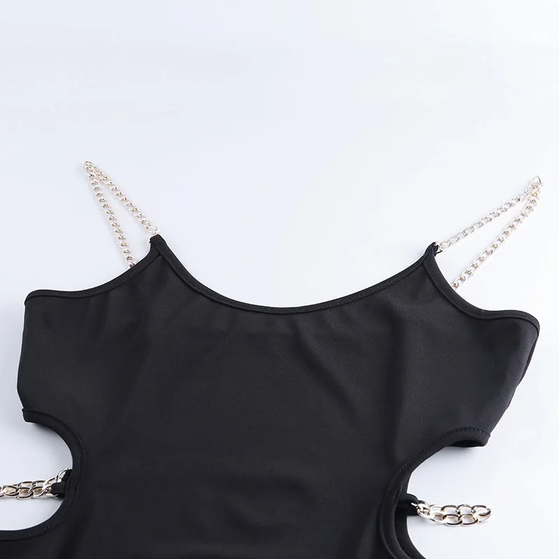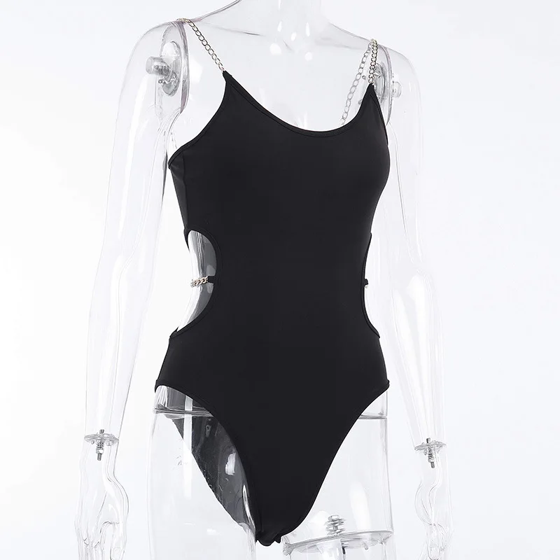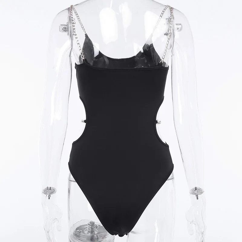 Sexy Bodysuits Rompers Women Spaghetti Strap Jumpsuit Hole Chain Overalls Sleeveless Ladies Skinny Jumpsuits Tops Playsuit