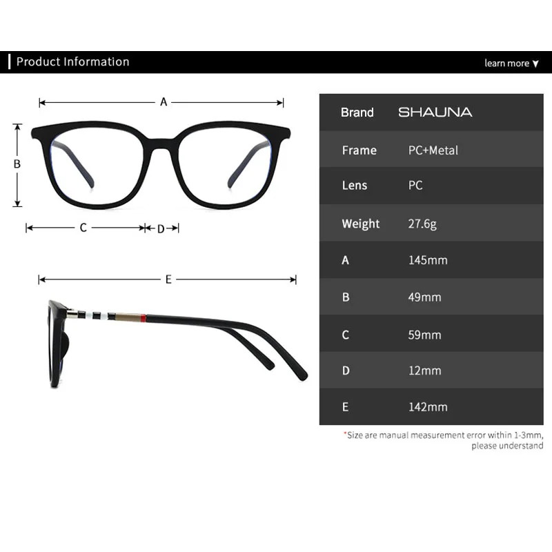 Be the first to review “SHAUNA Anti Blue Light TR90 Women Cat Eye Glasses Frames Luxury Men Optical Computer Glasses”