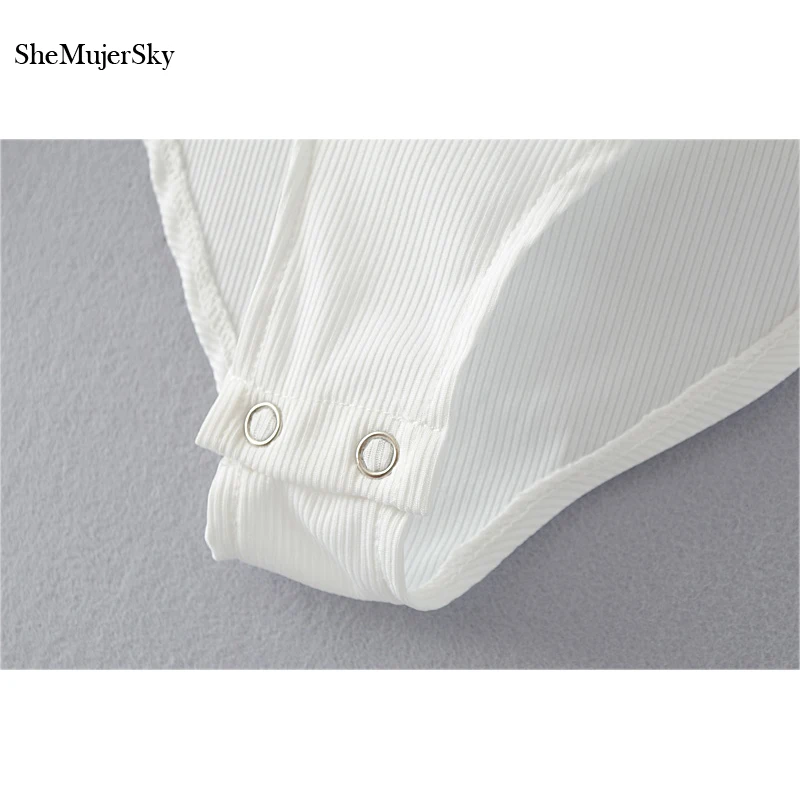 SheMujerSky Long Sleeve Bodysuit Women Backless Jumpsuits Black White Body femme monos cortos de mujer