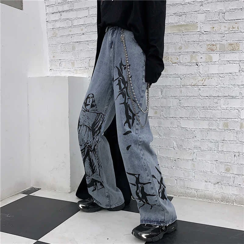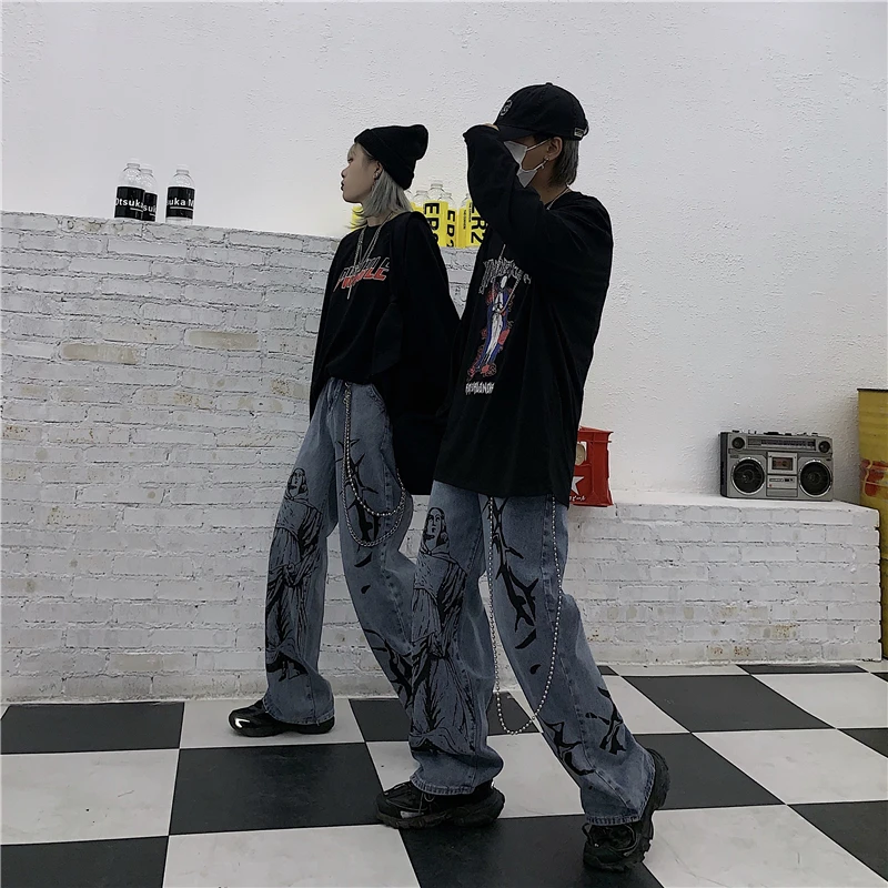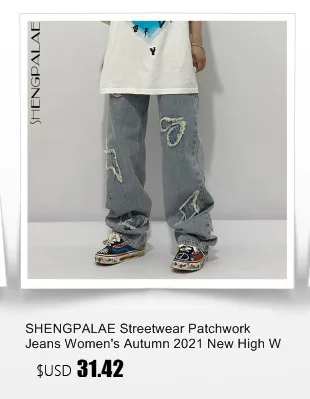 SHENGPALAE 2021 New Summer Fashion Ins Street Hip-hop Printing Wash Jeans Loose Casual Denim Wide Leg Pants Tide Woman ZA4395
