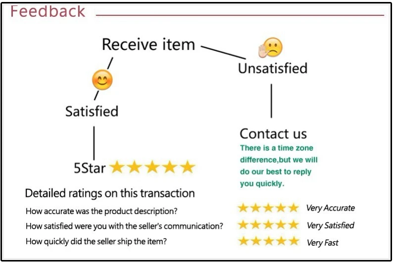 If you are satisfied with the product you get, please leave a positive feedback, 5 stars is most welcomed.