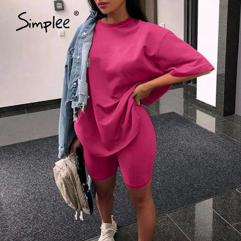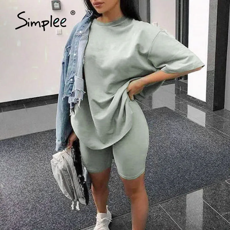 Simplee Casual Solid Outfits Women’s Two Piece Suit with Belt Home Loose Sports Tracksuits Fashion Bicycle Summer Hot Suit 2020