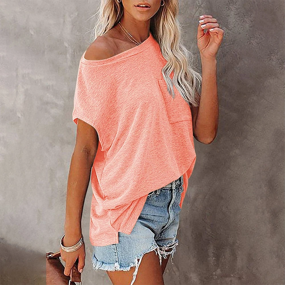 Solid Tops Tee Shirts Women Pocket T-shirt 2021 Summer Casual O-neck Loose T Shirt Short Sleeve Female Soft Tops mujer camisetas