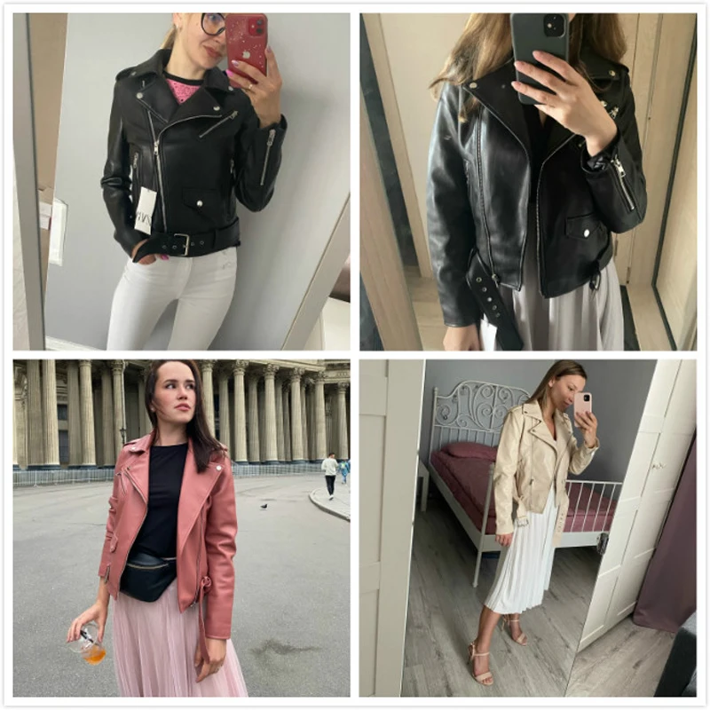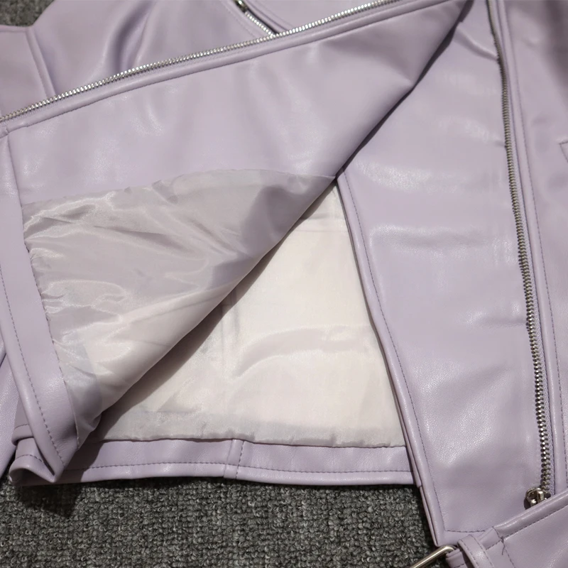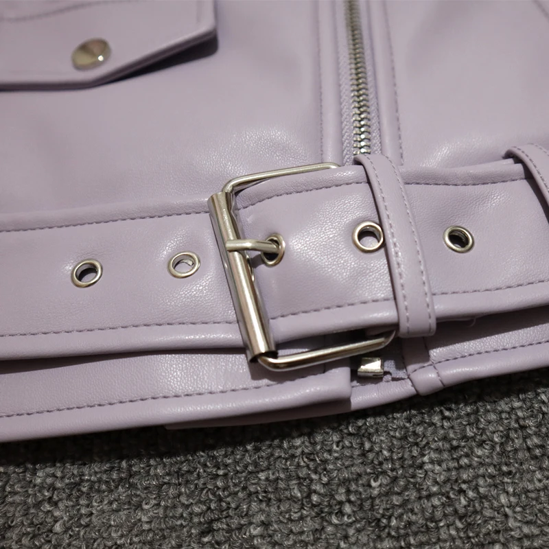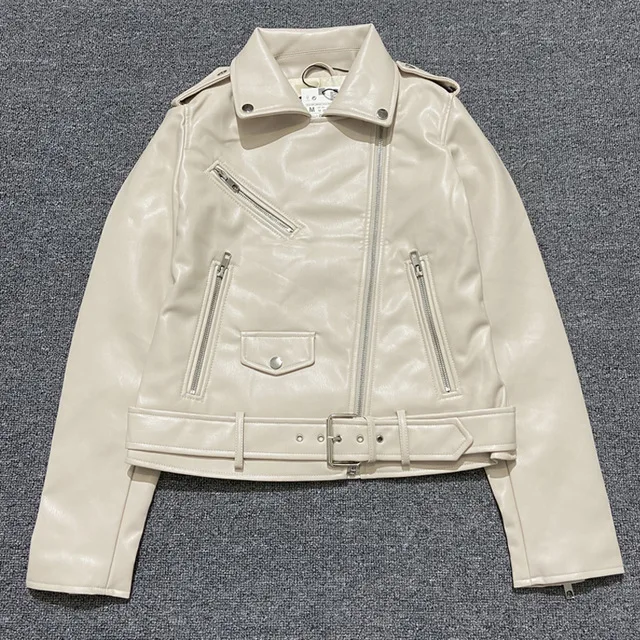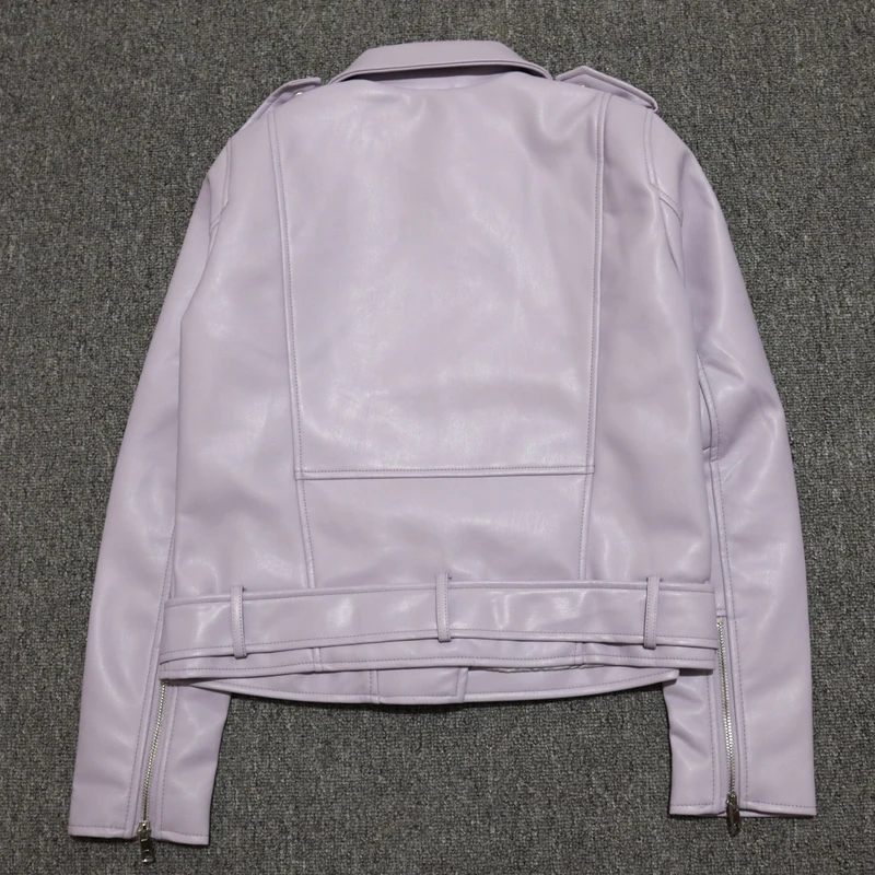 Spring Autumn Women Faux Leather Jacket Ladies Solid With Belt Zipper Biker Coat Female Casual Outwear