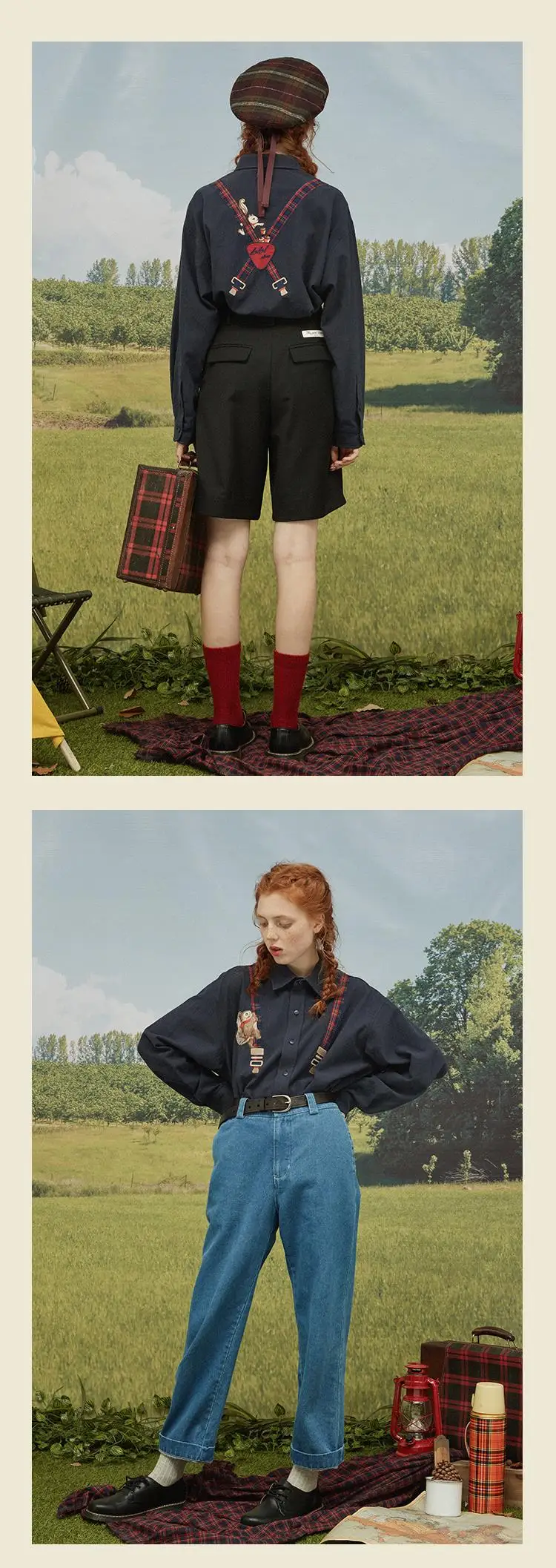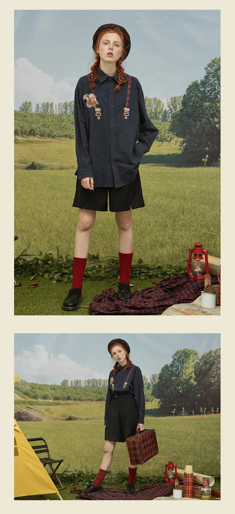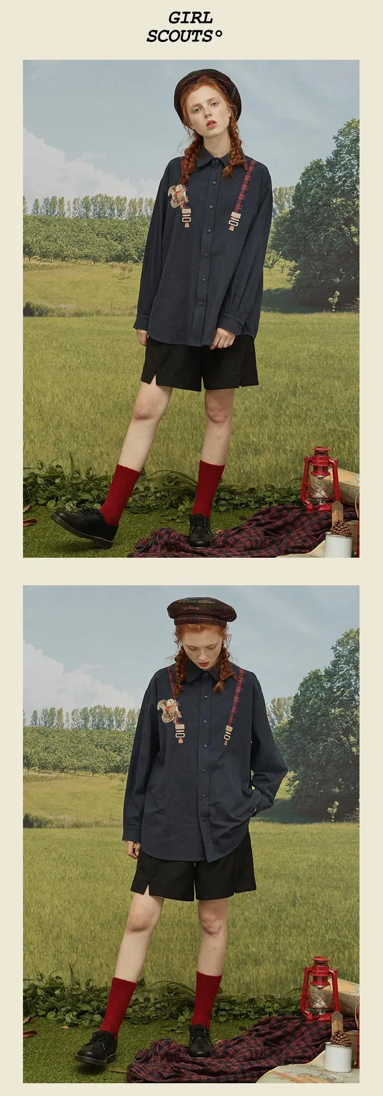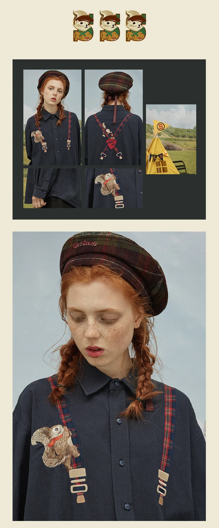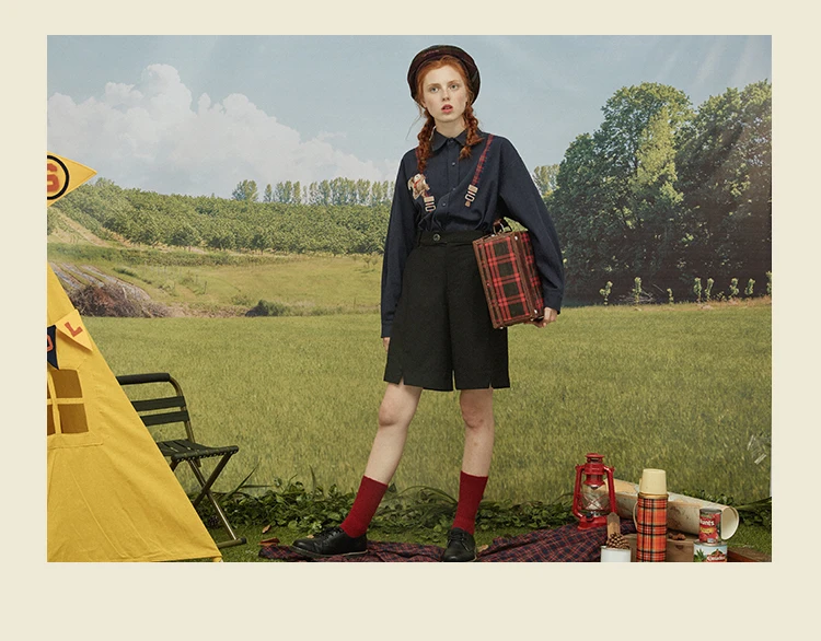 Spring High Quality Fashion Design Women Cotton Blouse Long Sleeve Turn Down Collar Ladies Loose Shirt Tops Squirrel Plaid Patch