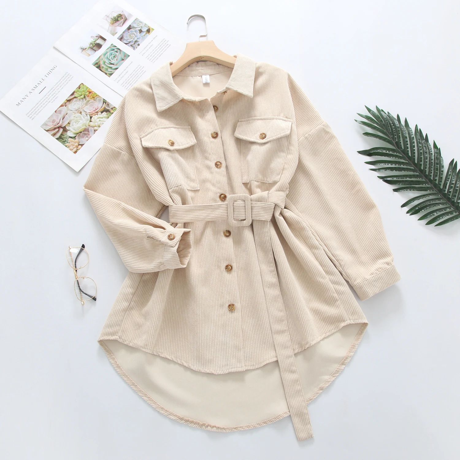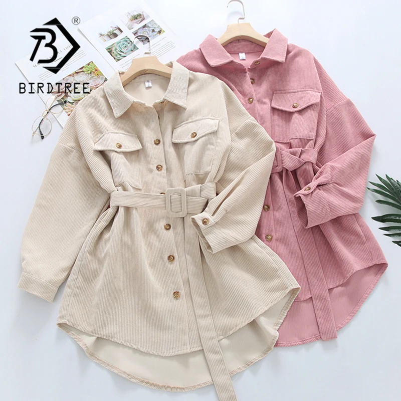 Spring New Women Solid Corduroy Batwing Sleeve Vintage Shirt Jacket With Belt Turn-Down Collar Long Outwear Female Casual Tops