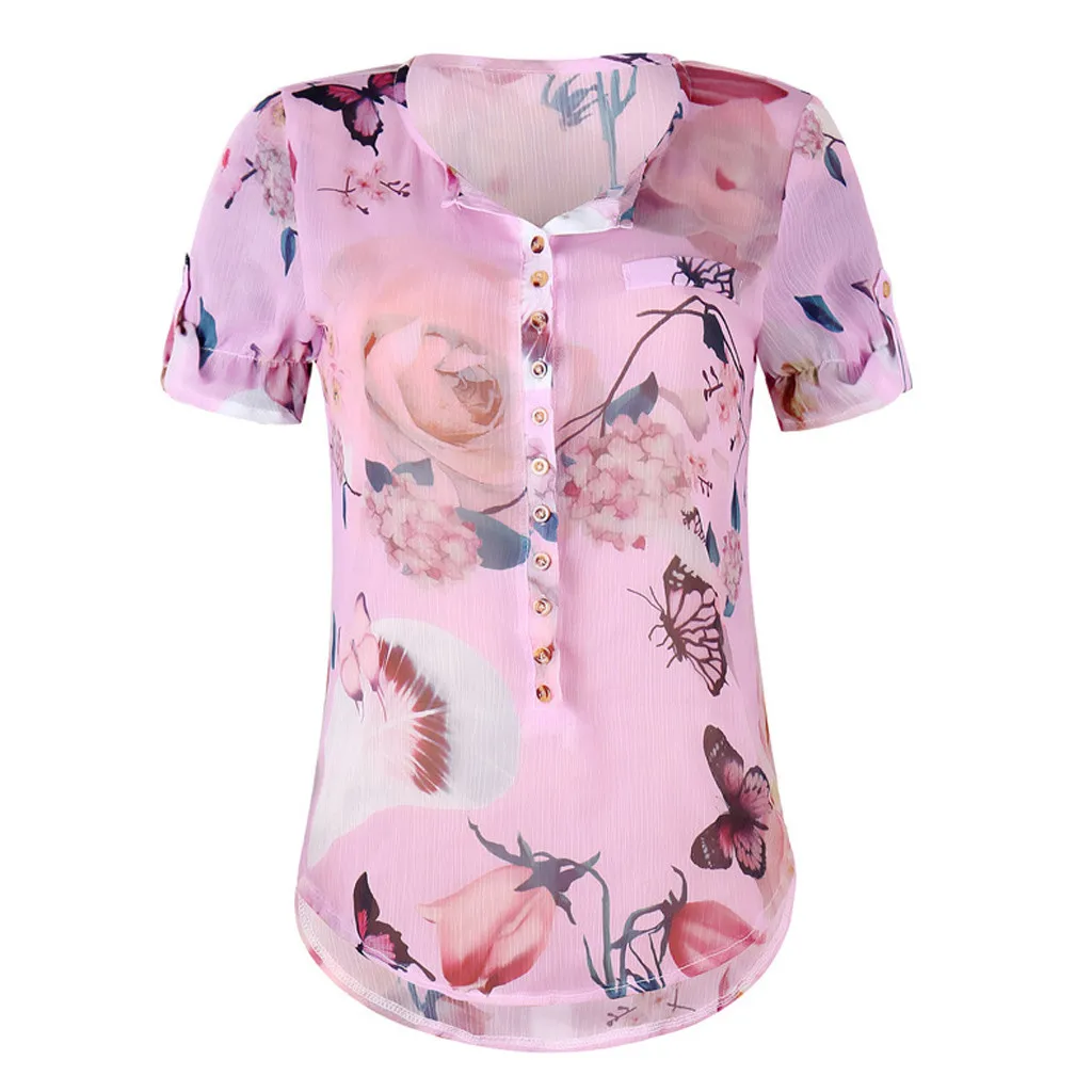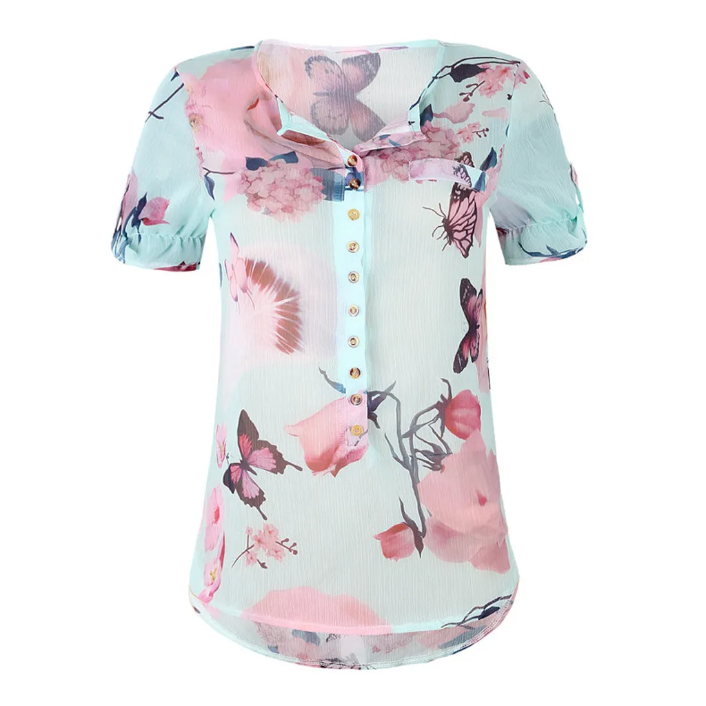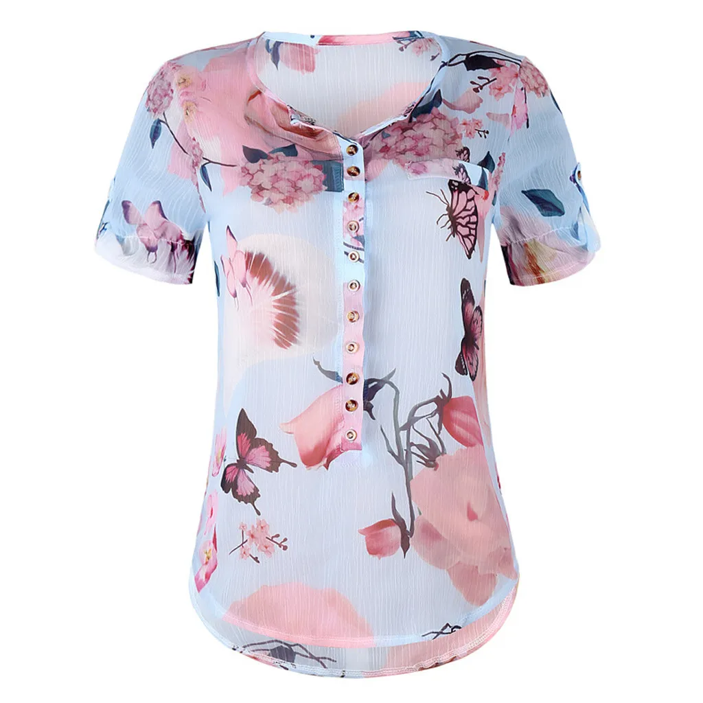 Summer 2019 Fashion Casual Button Chiffon Tops Blouse Printed Tee Top Female Womens Short Sleeve Shirt Blusas Femininas Clothing
