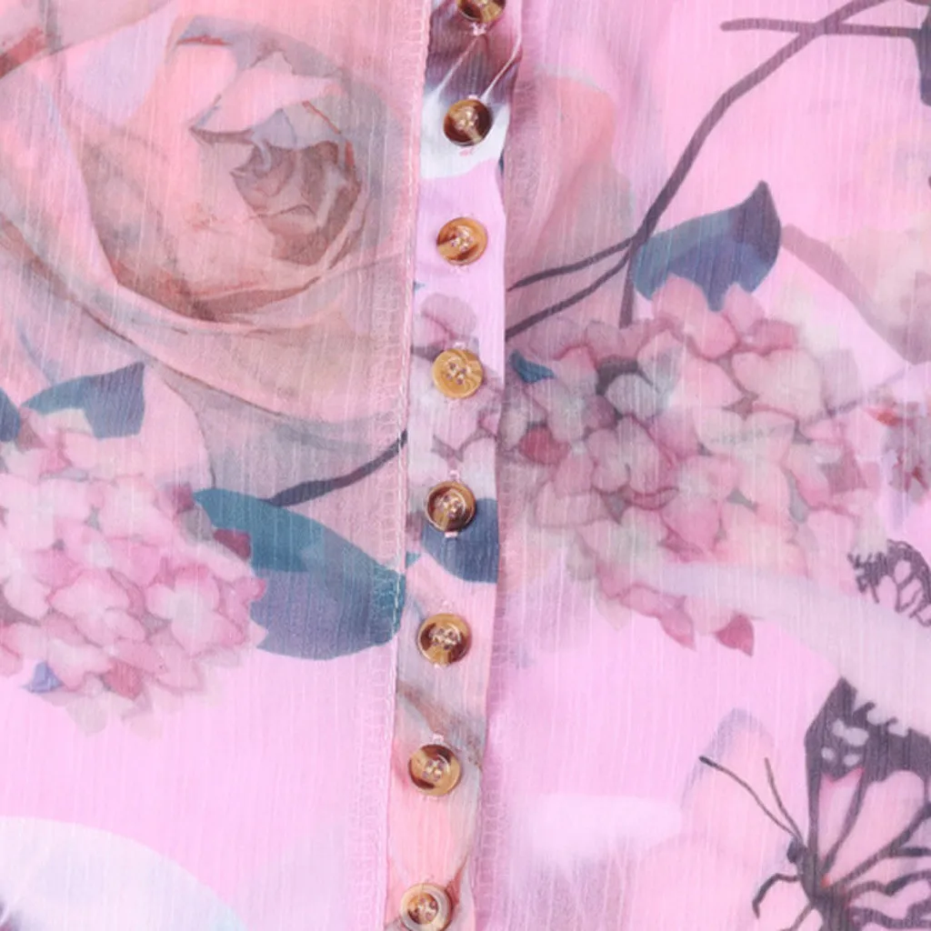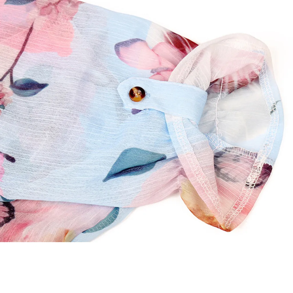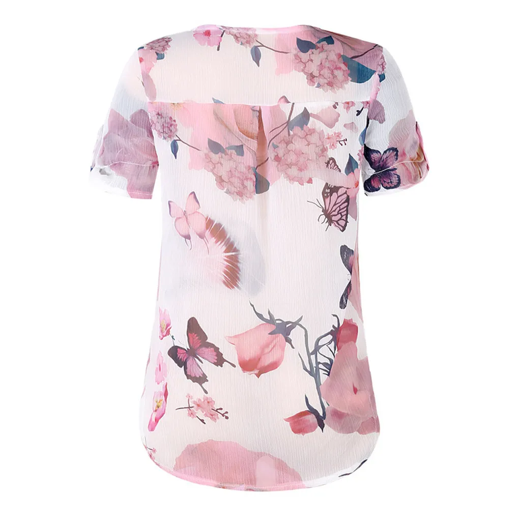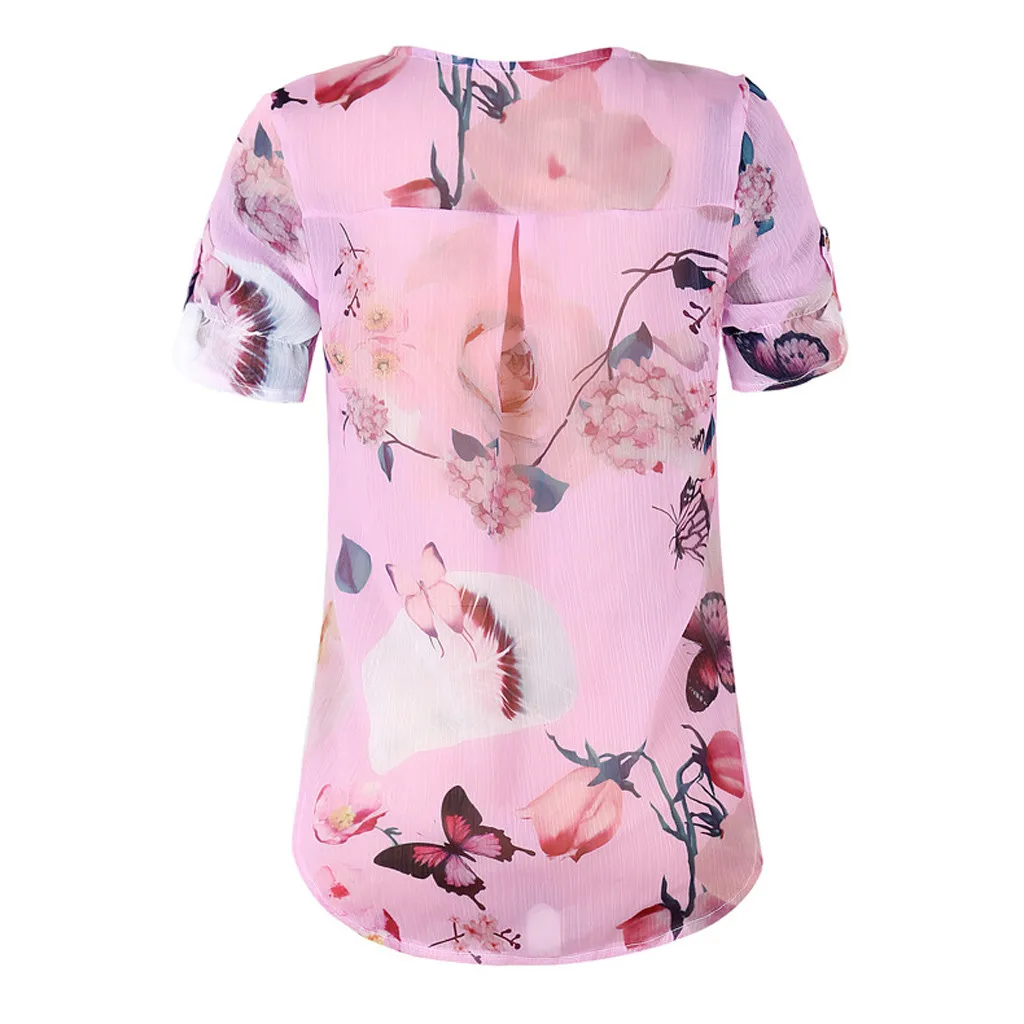 Summer 2019 Fashion Casual Button Chiffon Tops Blouse Printed Tee Top Female Womens Short Sleeve Shirt Blusas Femininas Clothing