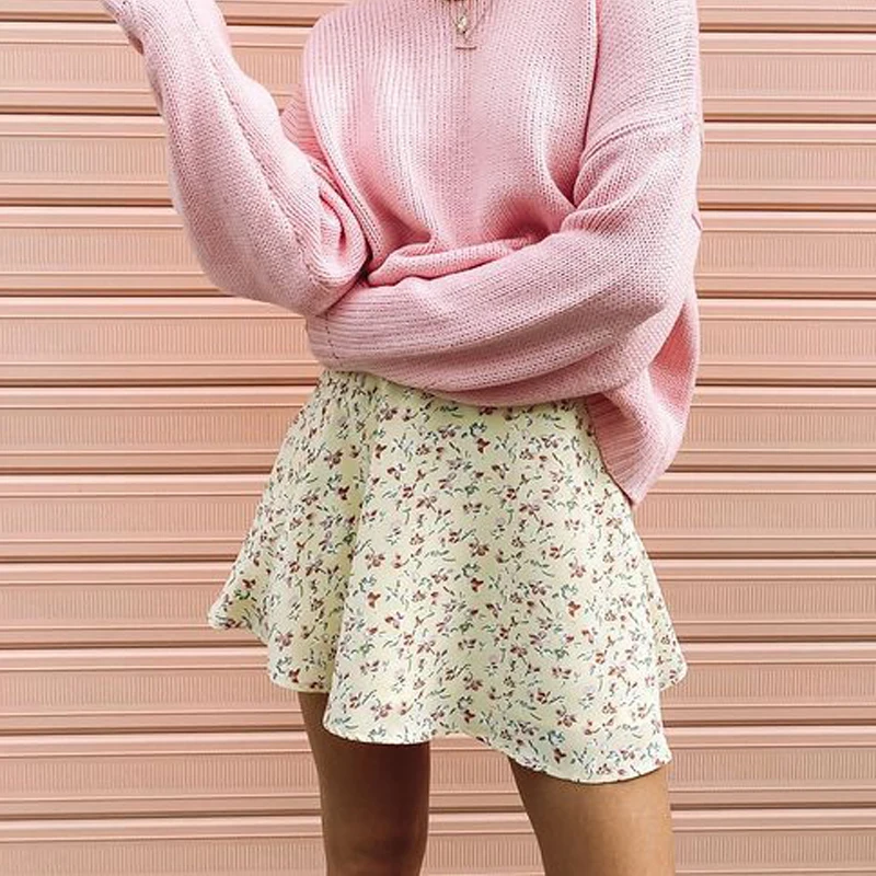 Be the first to review “Summer new women’s floral print skirt high waist umbrella mini skirt Female invisible zipper chiffon print short skirt women”