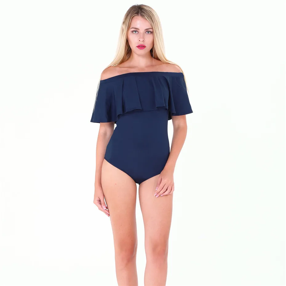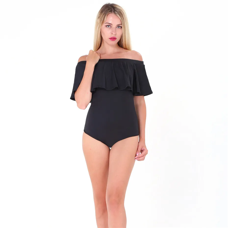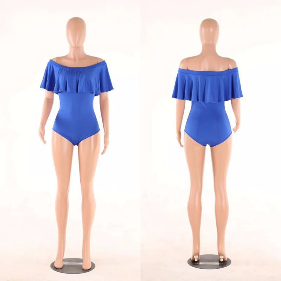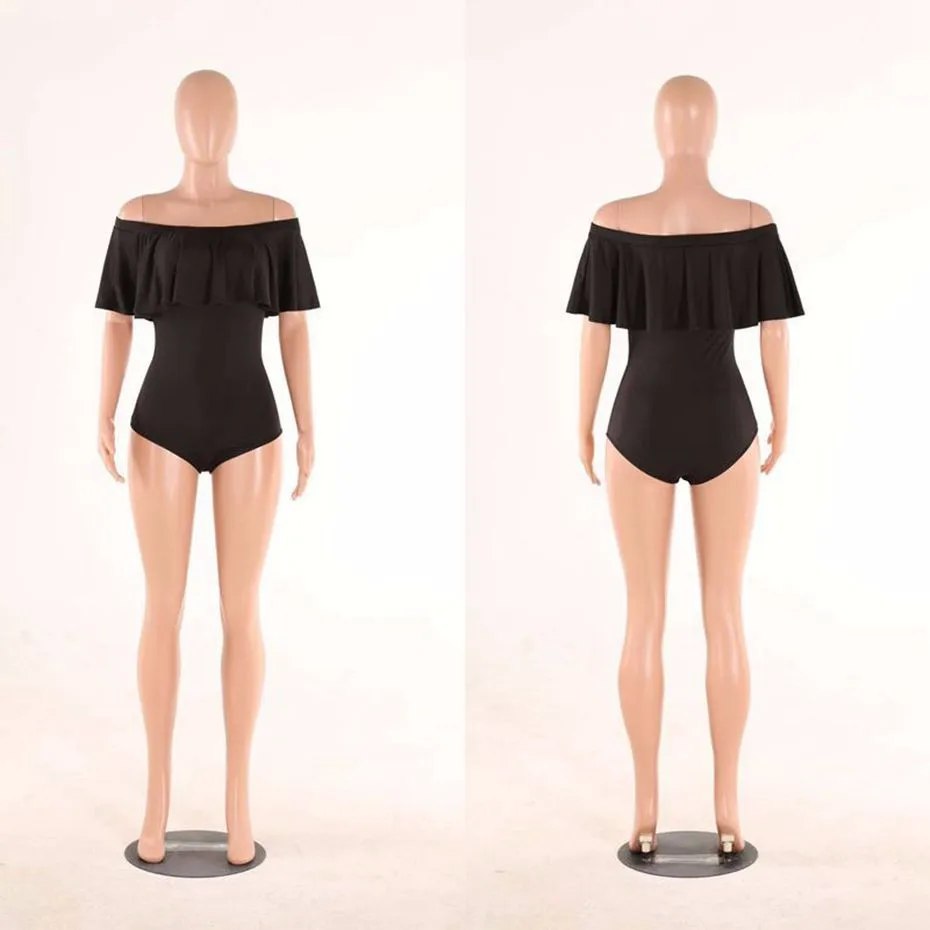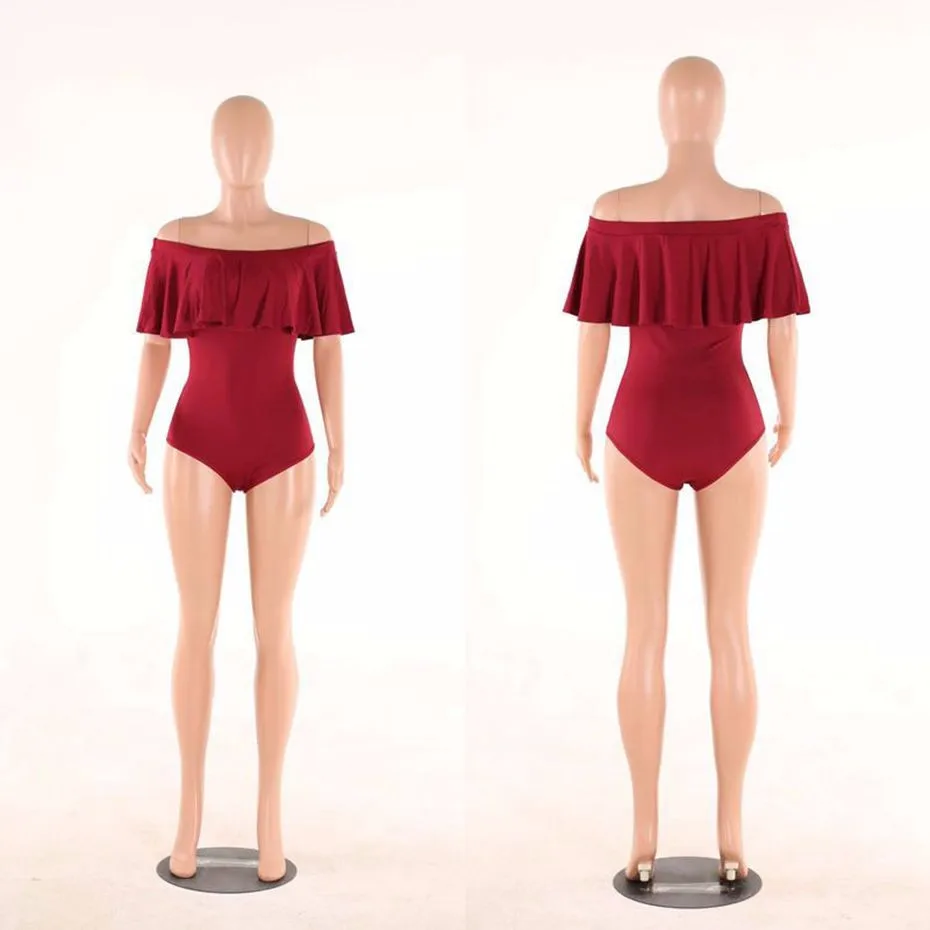 Summer Ruffles Off Shoulder Bodysuit Women Black Red Combinaison Femme Backless Sexy Rompers Jumpsuit Skinny Bodycon Overalls