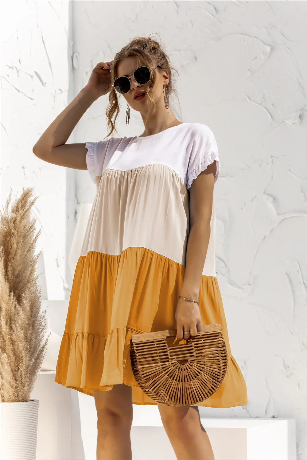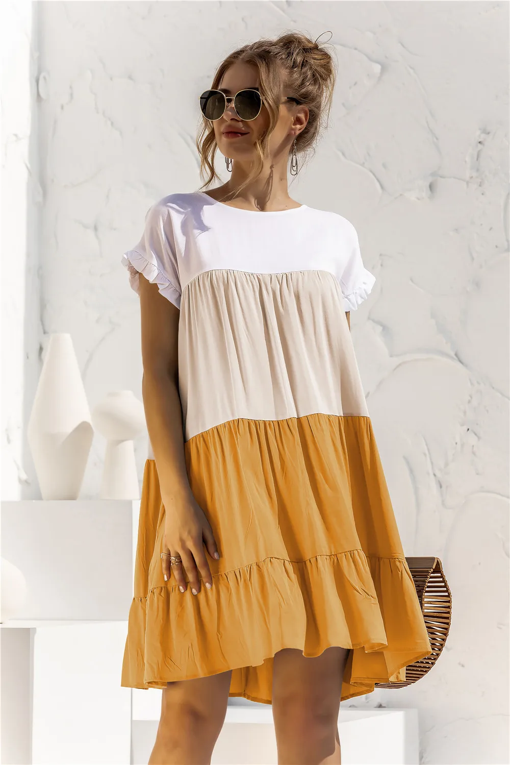 Summer Women OverSize Loose Dress 2021 New Arrival Ladies Casual Short Sleeve Big Ruffles Cupcake Dress Female Beach Dresses