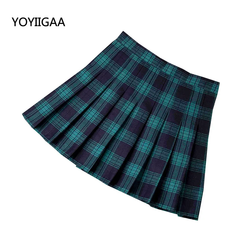 Summer Vintage Plaid Mini Skirt High Waist Chic Student Pleat Skirts Fashion Office Ladies Club Party Casual Short Pleated Skirt