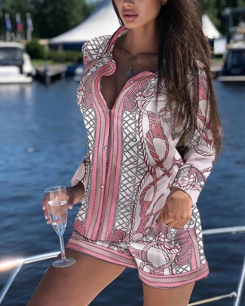 Summer Women Two Piece Set Eyelet Embroidery Buttoned Shirt Top & Pocket Design Shorts Set 2021
