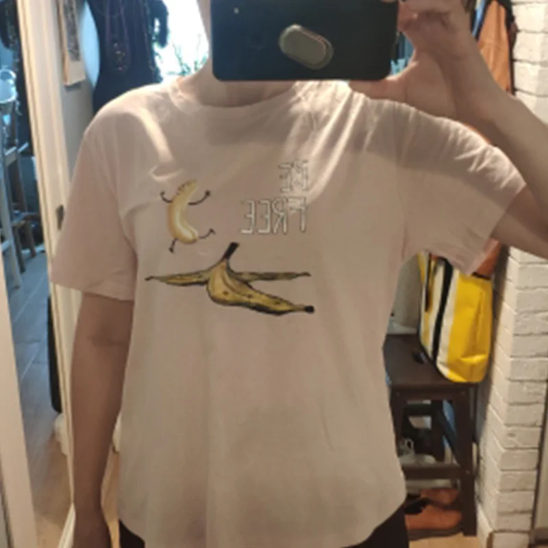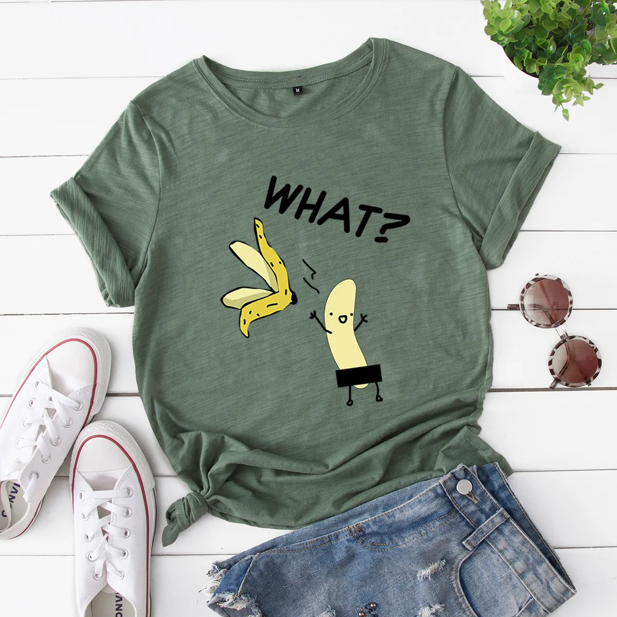 Summer Women’s Cotton T-shirt Fruit Banana Print Tops Short Sleeve Tees Crew Neck Be Free Funny Female Graphic Casual Shirts
