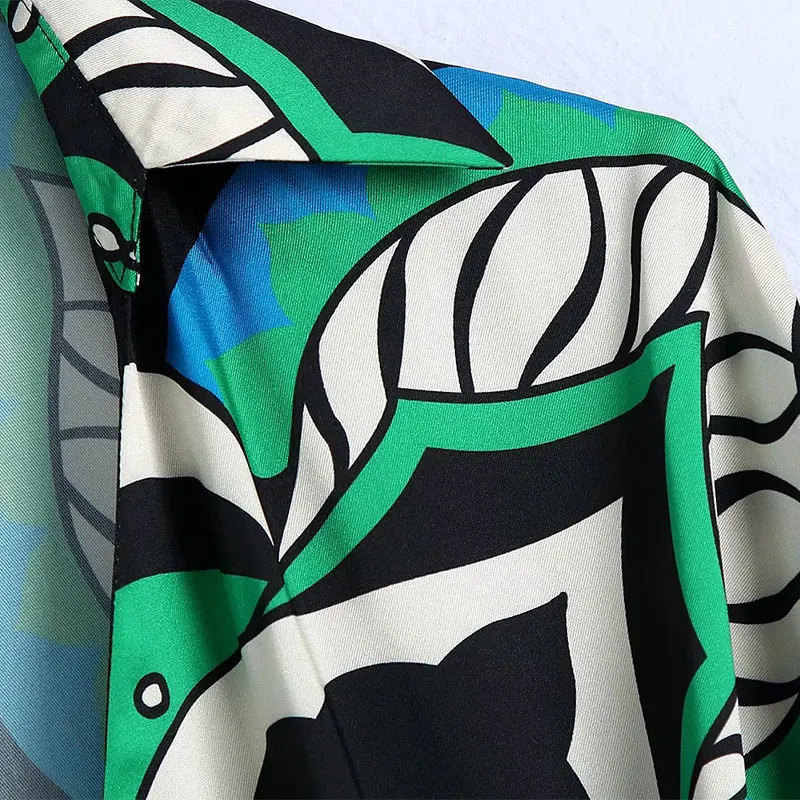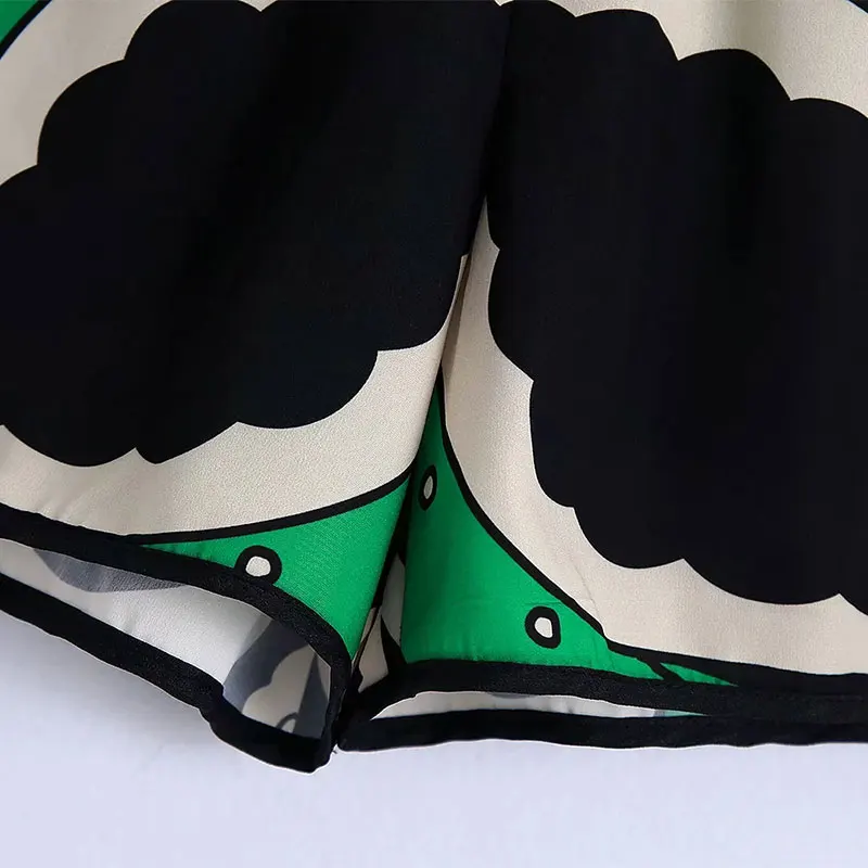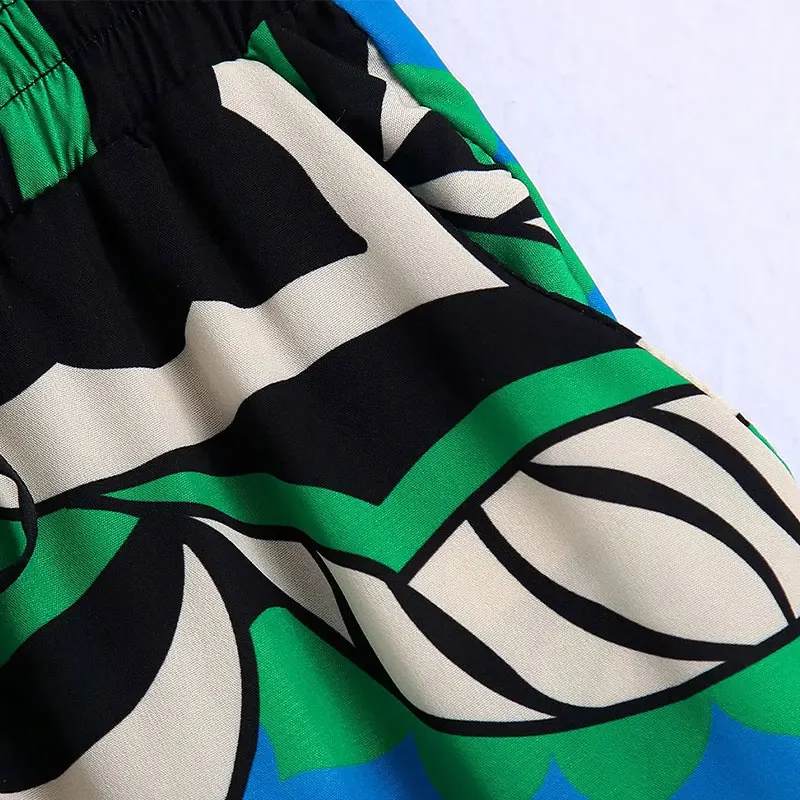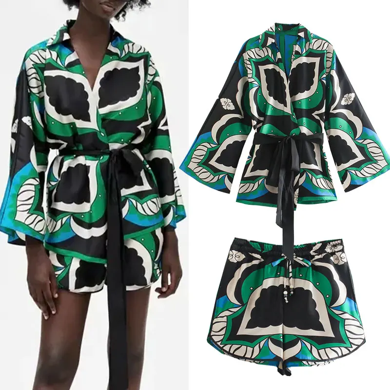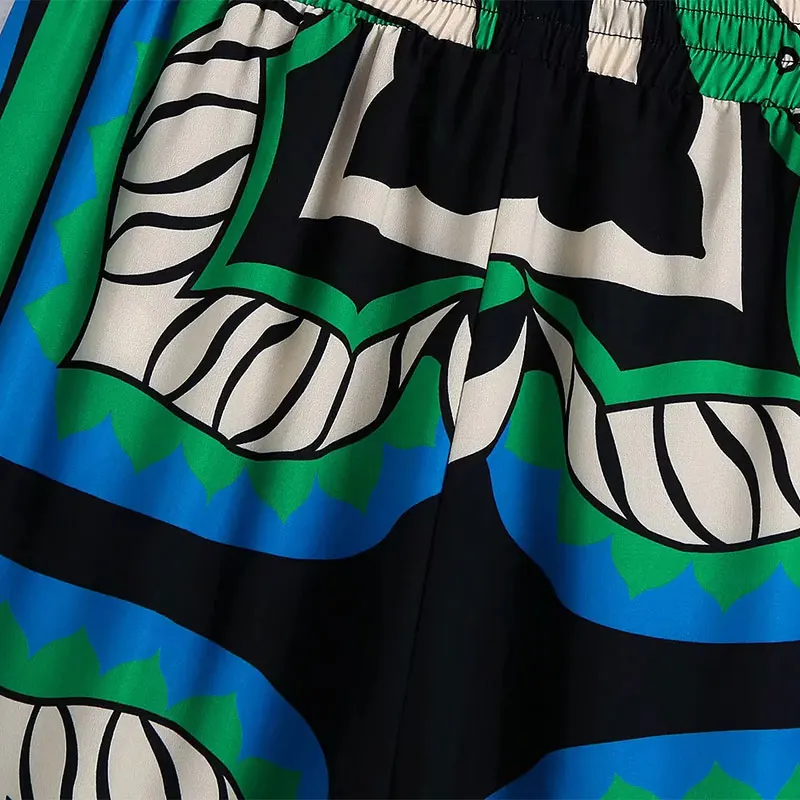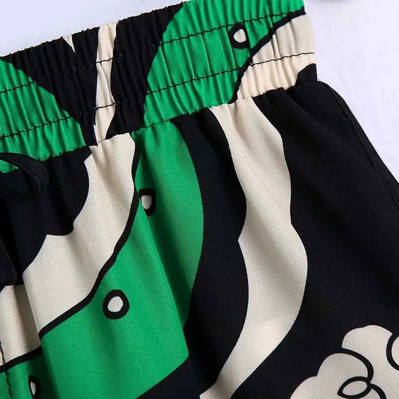 Summer Women’s Fashion Shorts Sets Za 2021 Long Sleeve Tops Printing Waistband Shirt+High Waist Pants Two Piece Set Casual