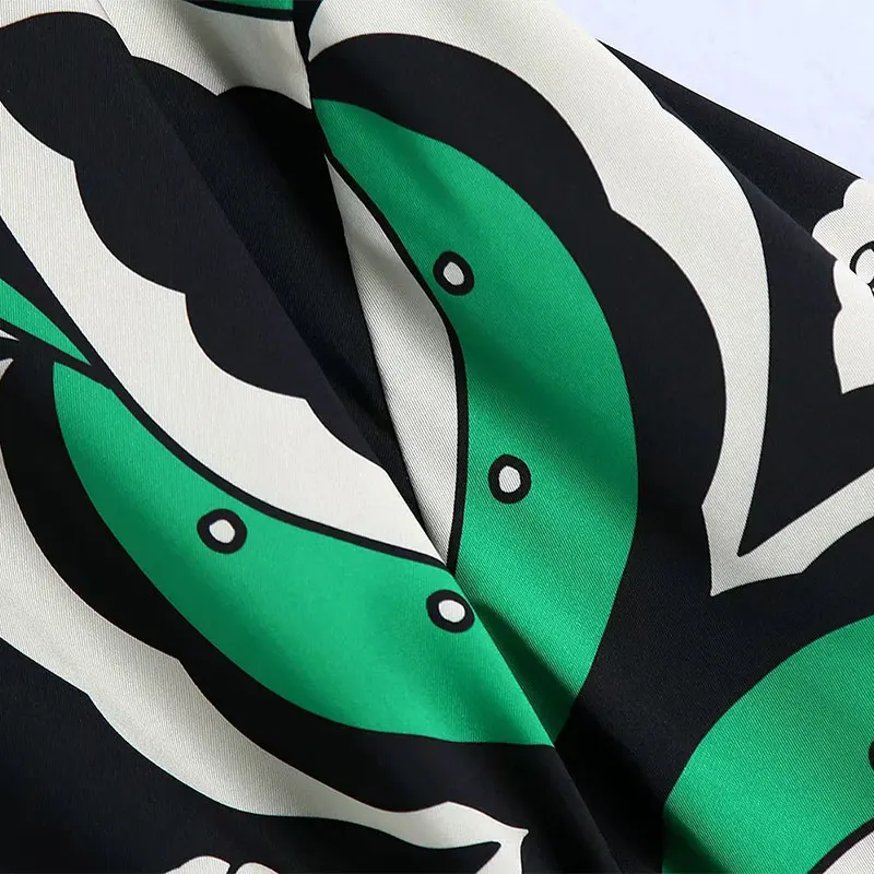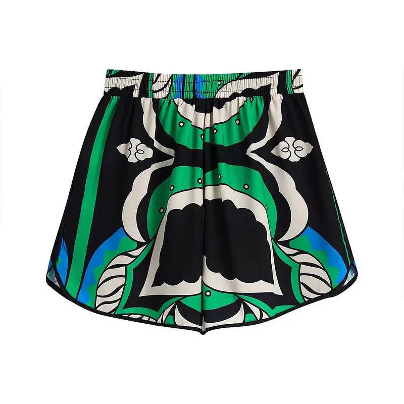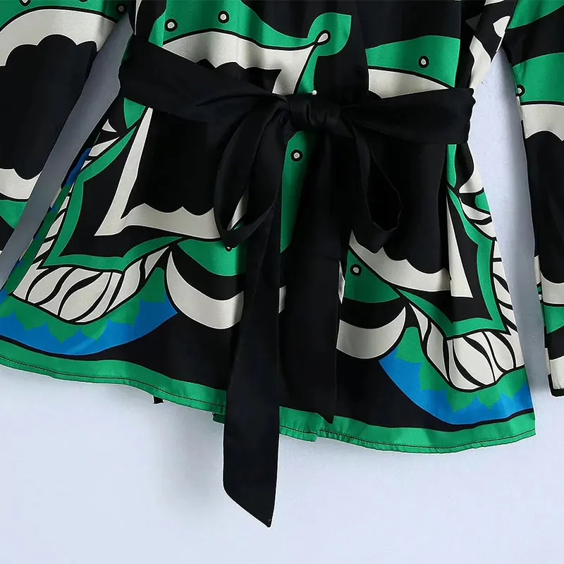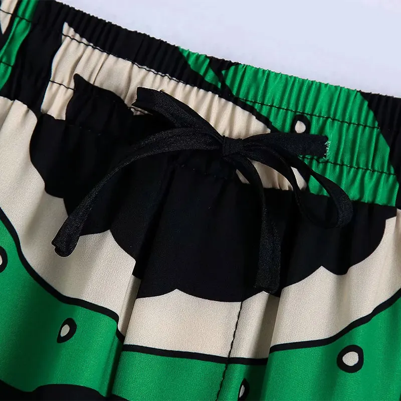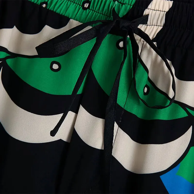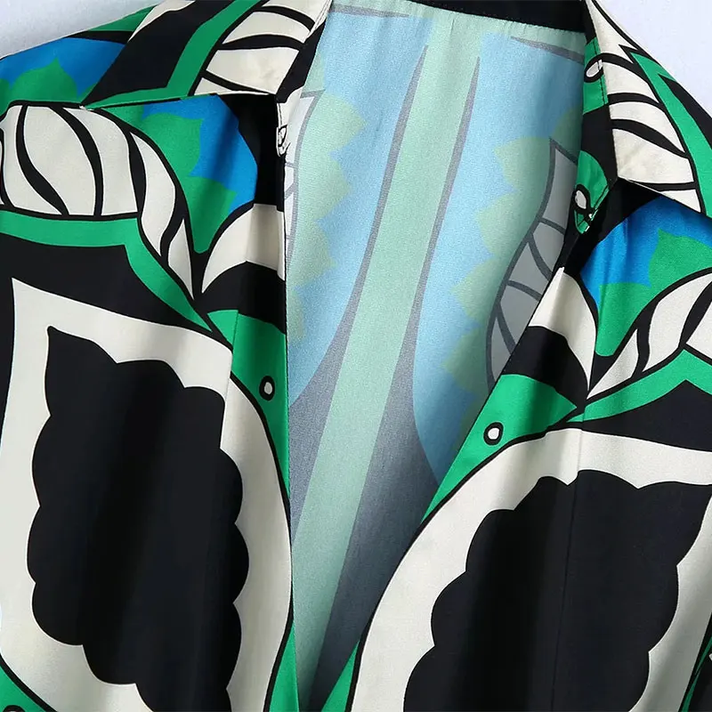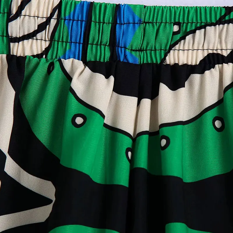 Summer Women’s Fashion Shorts Sets Za 2021 Long Sleeve Tops Printing Waistband Shirt+High Waist Pants Two Piece Set Casual