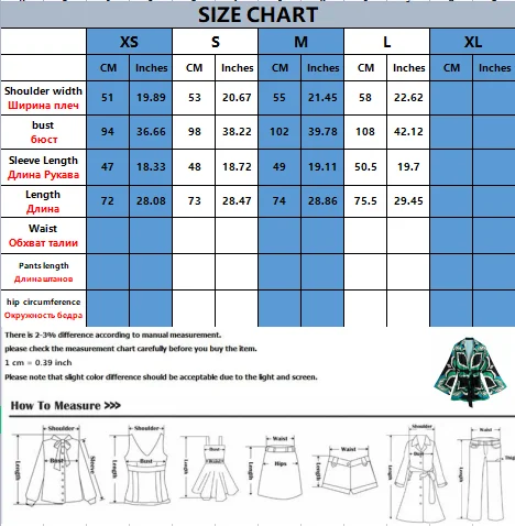SizeBustShoulderLengthSleeve LengthWaistHipPant Length