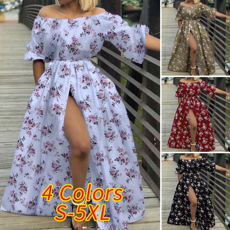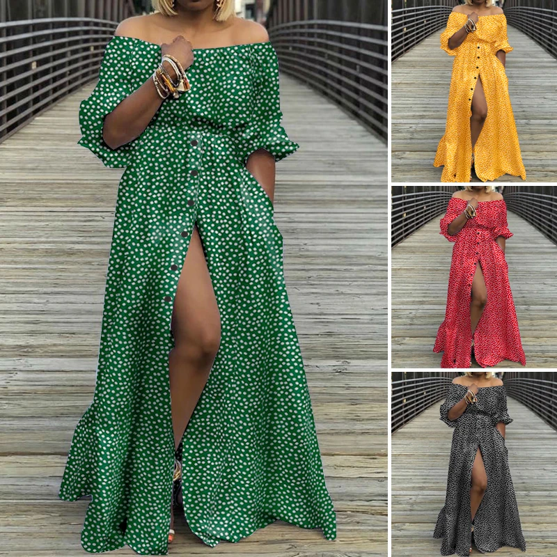 Summer Women’s Maxi Dress 2021 Celmia Sexy High Waist High Split Long Sundress Three Quarter Sleeves Floor-Length Vestidos Robes