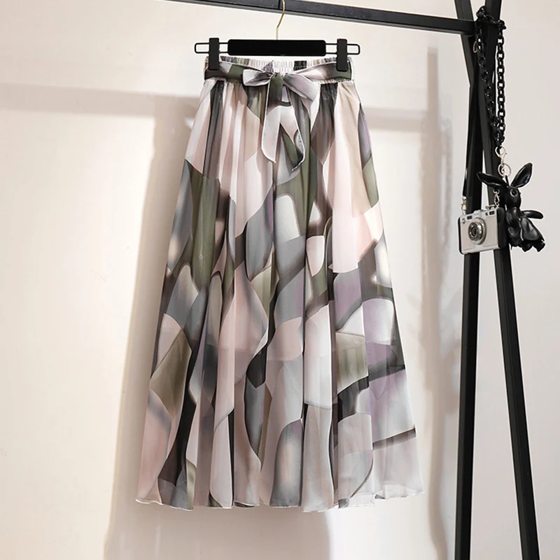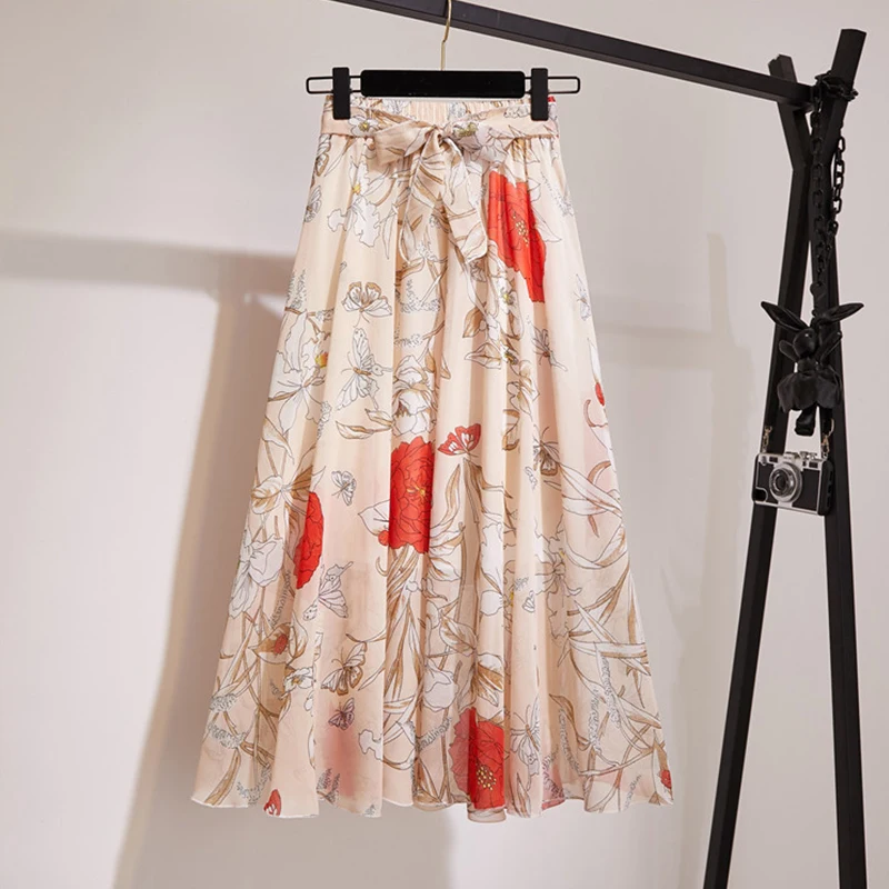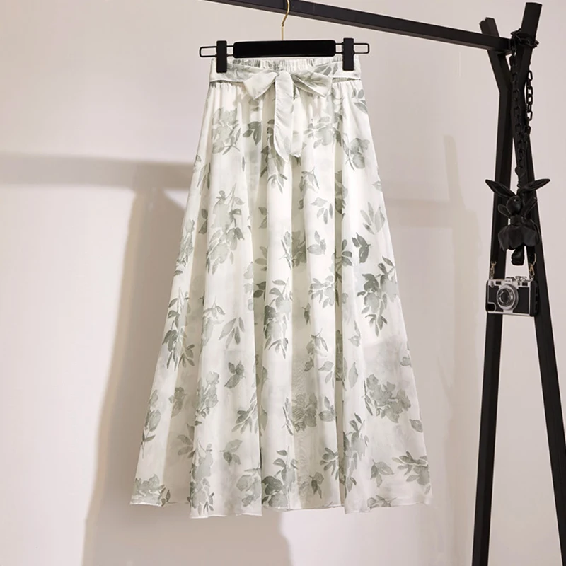 Surmiitro Long Skirt Women For 2021 Spring Summer Lady Korean Style White Black Chiffon Sun School High Waist Midi Skirt Female